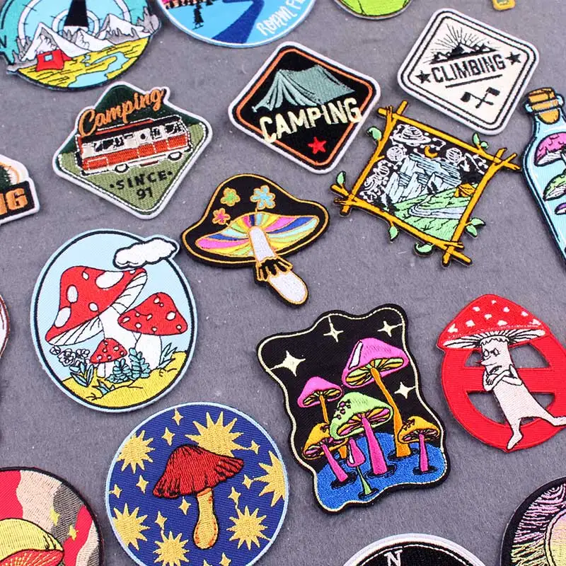 Parche de setas para planchar, parches para ropa, parches bordados para acampar, parches termoadhesivos, pegatinas de aventura