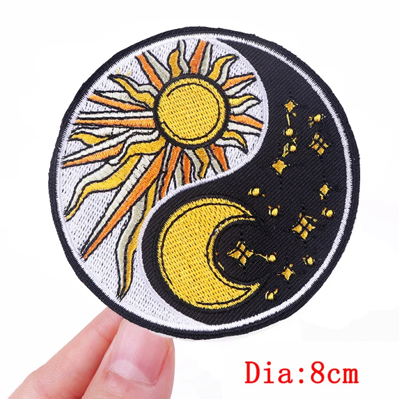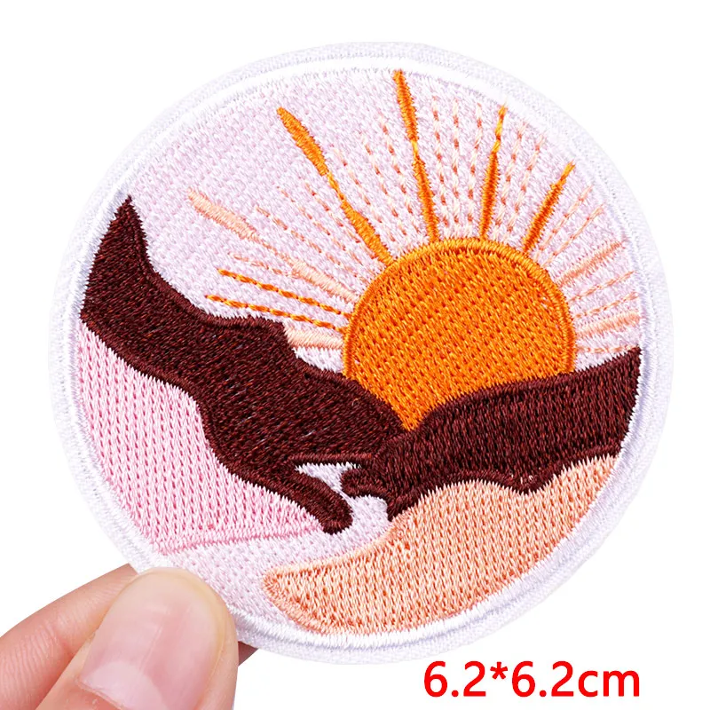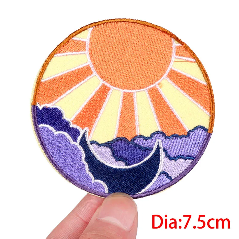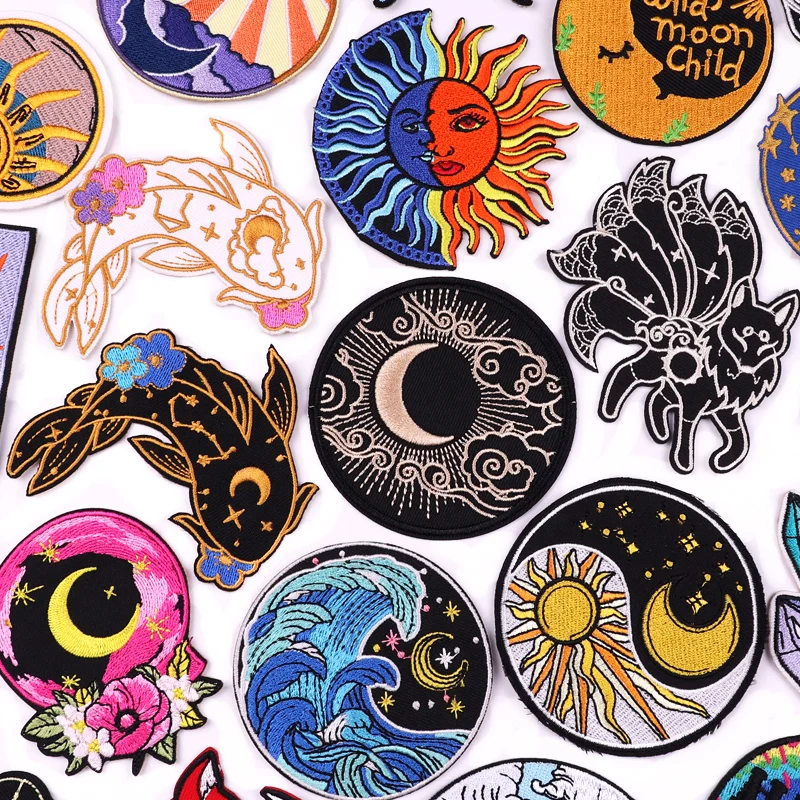 Parche de sol y luna, parche bordado de ballena y zorro, parches para planchar para ropa, parches de dibujos animados/onda DIY para ropa, pegatinas para coser chaqueta