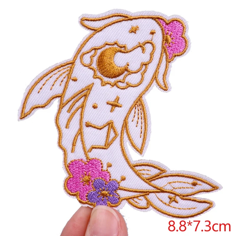 Parche de sol y luna, Parche bordado de ballena de zorro, parches de hierro para ropa, parches de dibujos animados/ondulados DIY para ropa, chaqueta, pegatinas para coser