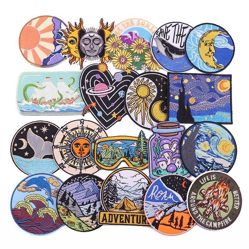 Parche del sol con la luna para ropa, apliques de aventura, parches bordados, parches de hierro para adhesivos para ropa, insignia de costura