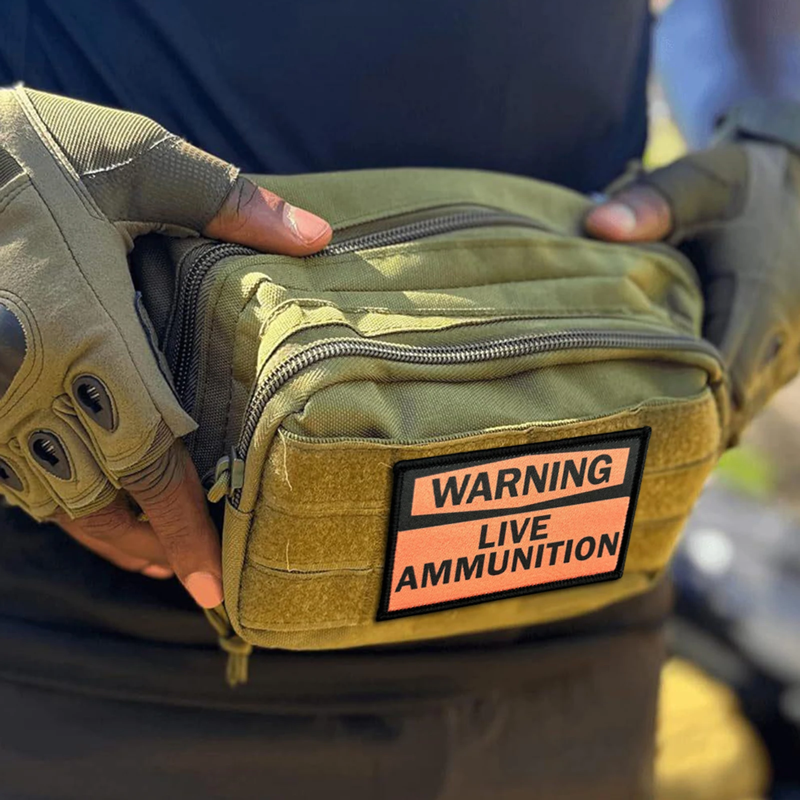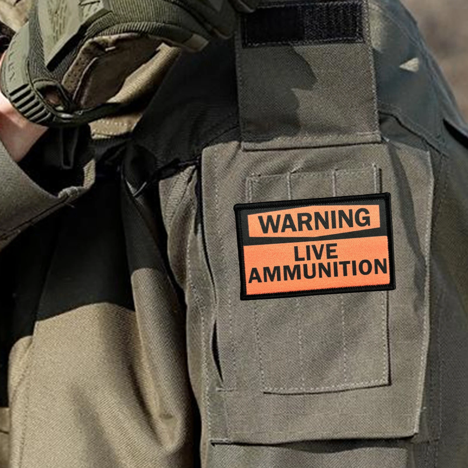 Parche táctico de advertencia de municiones en vivo, parches de gancho y bucle, brazalete, insignia de moral del ejército militar, pegatinas para mochila