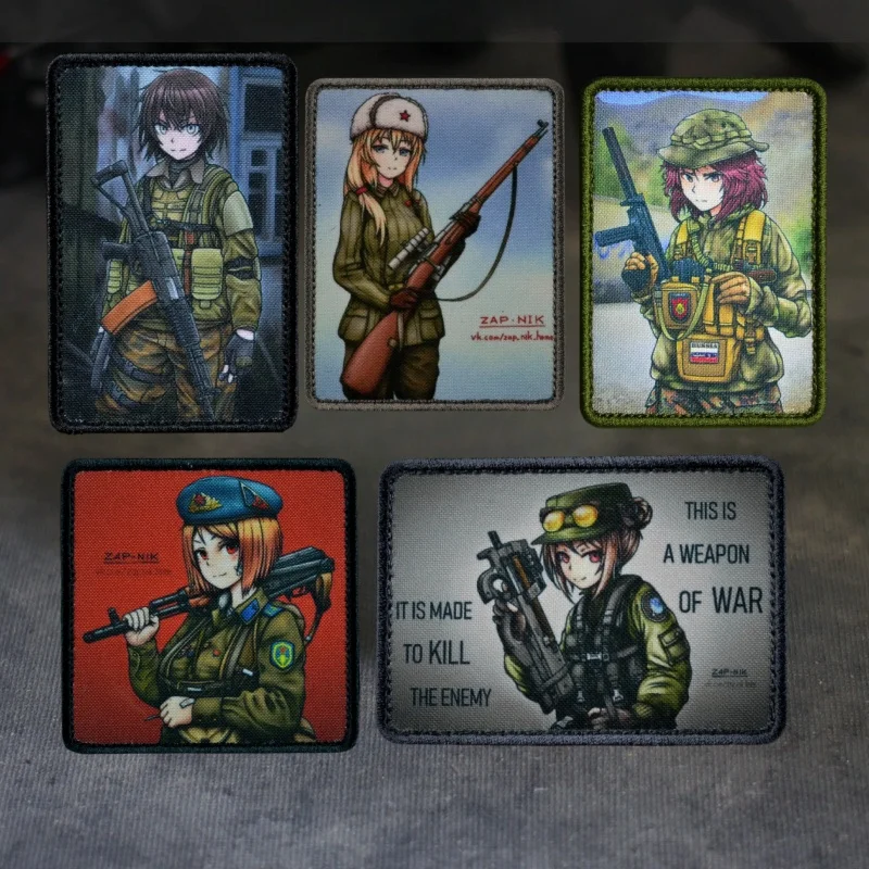Parche táctico “AEK-971” Hibisco para niñas, parches con estampado de gancho y bucle, ejército militar, Manga Mosinka, insignia de moral, pegatinas para mochila Crest