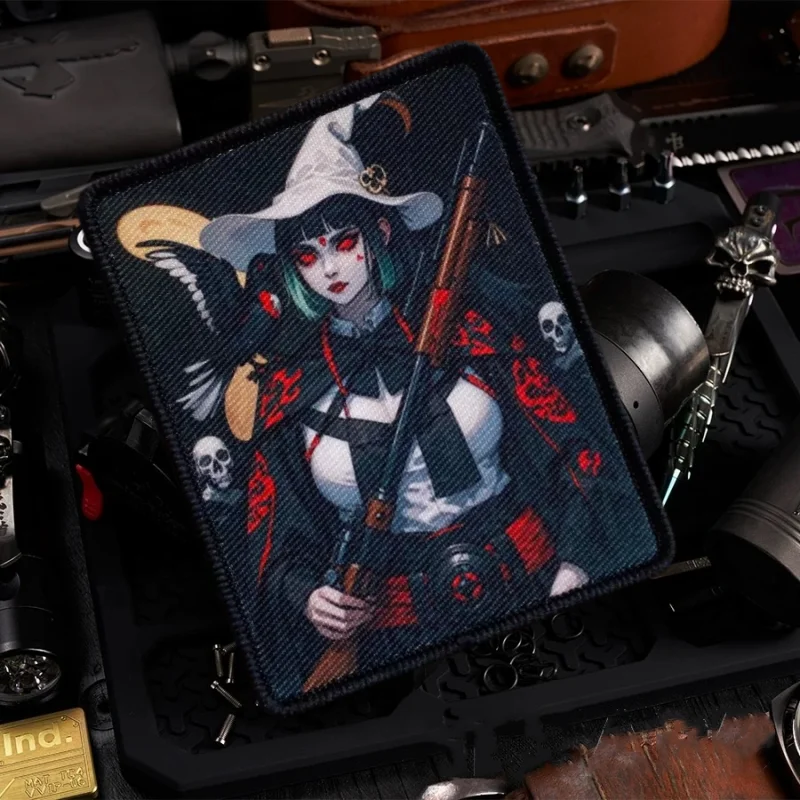 Parche táctico de Anime Witch with A Gun Morale, emblema de gancho y bucle impreso, insignia militar, brazalete de combate, pegatinas para mochila
