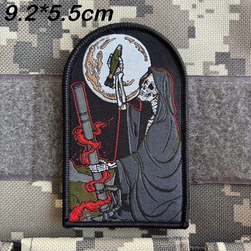 Parche táctico de artillería de calavera del ejército, insignia de moral bordada, esqueleto, soldado, gancho y bucle, brazalete militar, mochila, pegatina de muerte