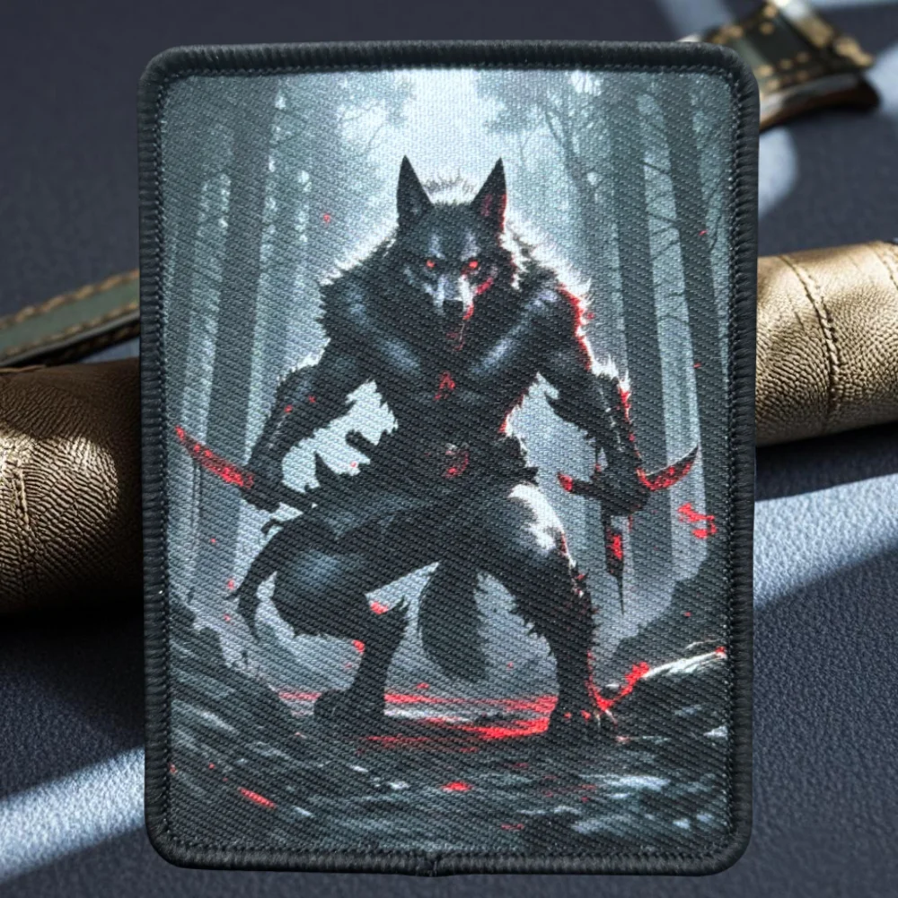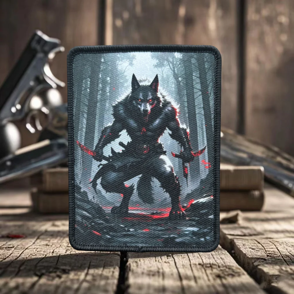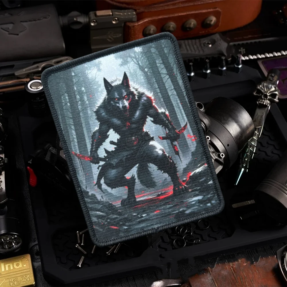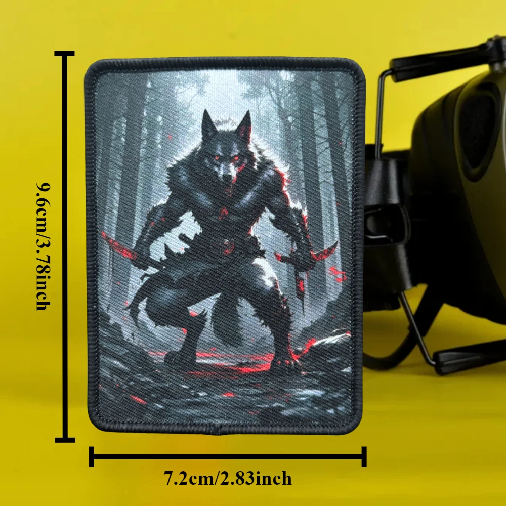 Parche táctico Bloodthirsty Wolf Morale, emblema de gancho y bucle con estampado de lobo de doble filo, insignia militar, brazalete de combate, pegatinas para mochila