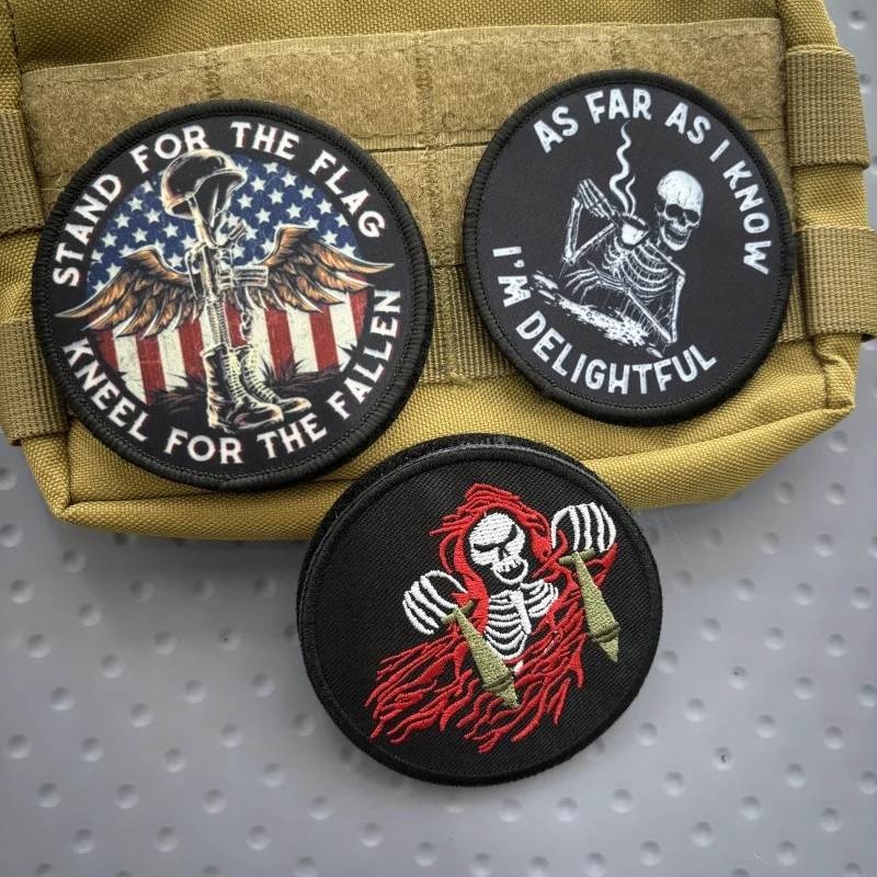 Parche táctico bordado de Calavera, soporte de emblema de gancho y bucle, insignia de moral de calavera caída, pegatinas de mochila