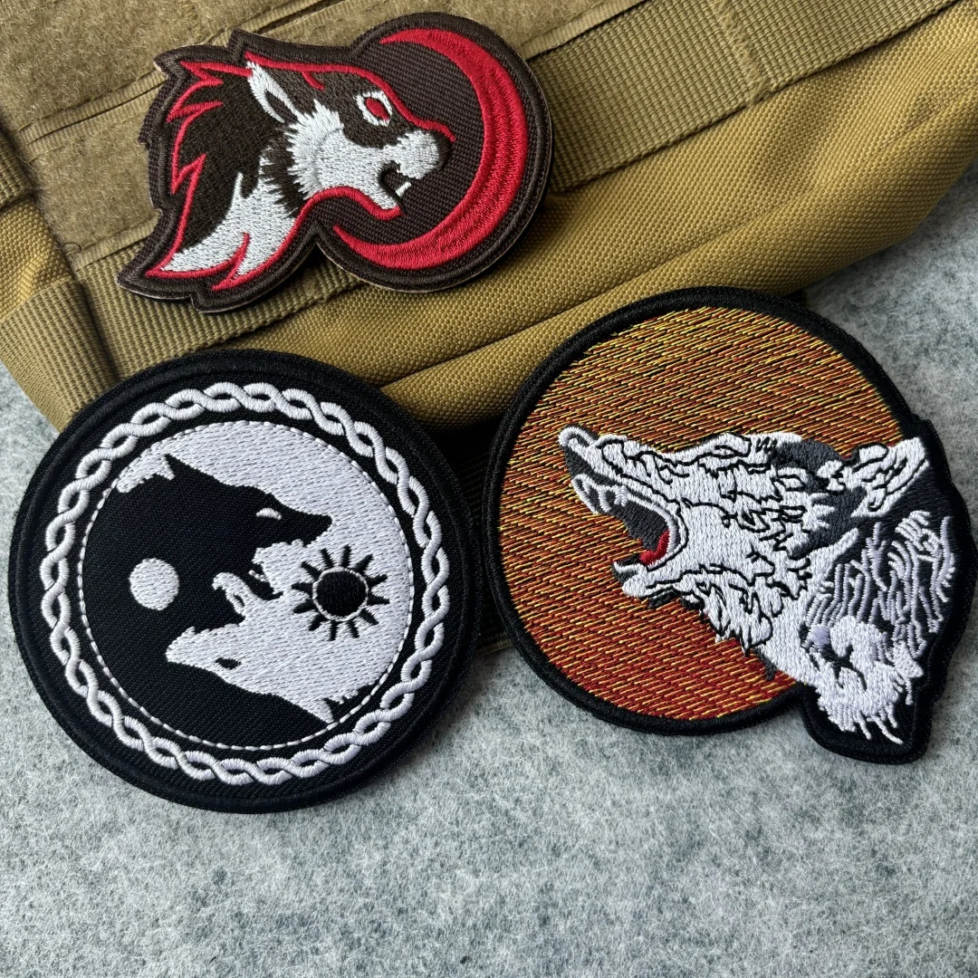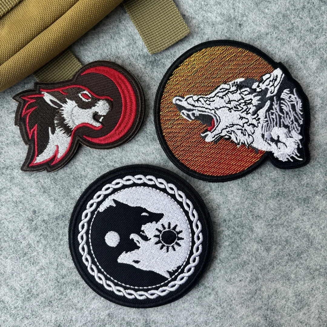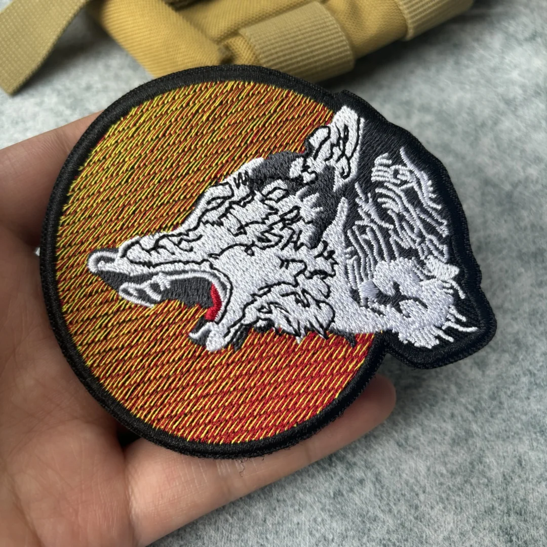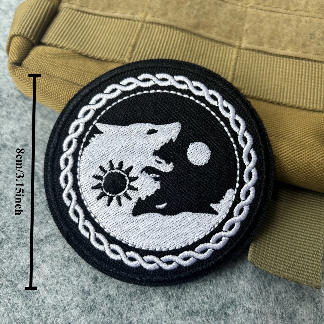 Parche táctico bordado con forma de luna de lobo, brazalete con gancho y bucle, insignia de moral militar, pegatinas para mochila y ropa