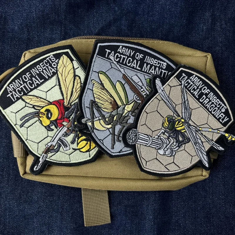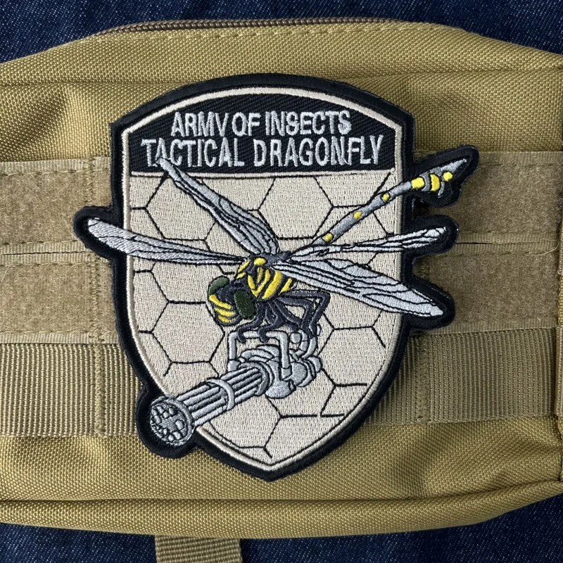 Parche táctico bordado de libélula, insignia de moral al aire libre, apliques DIY para ropa, pegatina de mochila, insecto, abeja, Mantis