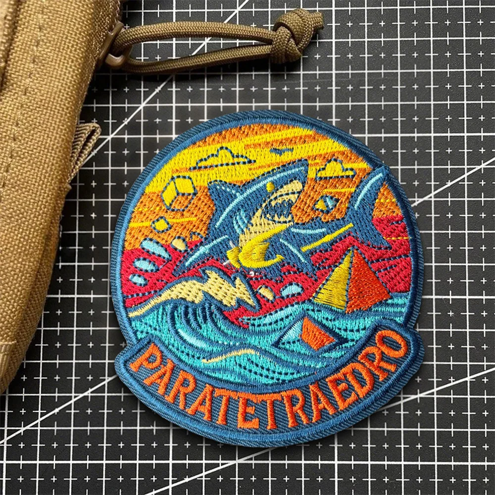 Parche táctico bordado de tiburón enojado, insignia militar de moral, brazalete con bucle de gancho para mochila, apliques de chaqueta1.Debido a las diferentes resoluciones de los dispositivos electrónicos, el color puede ser ligeramente diferente al color real.