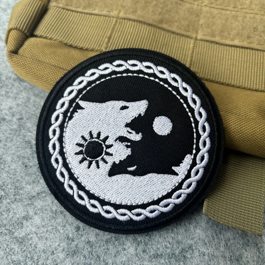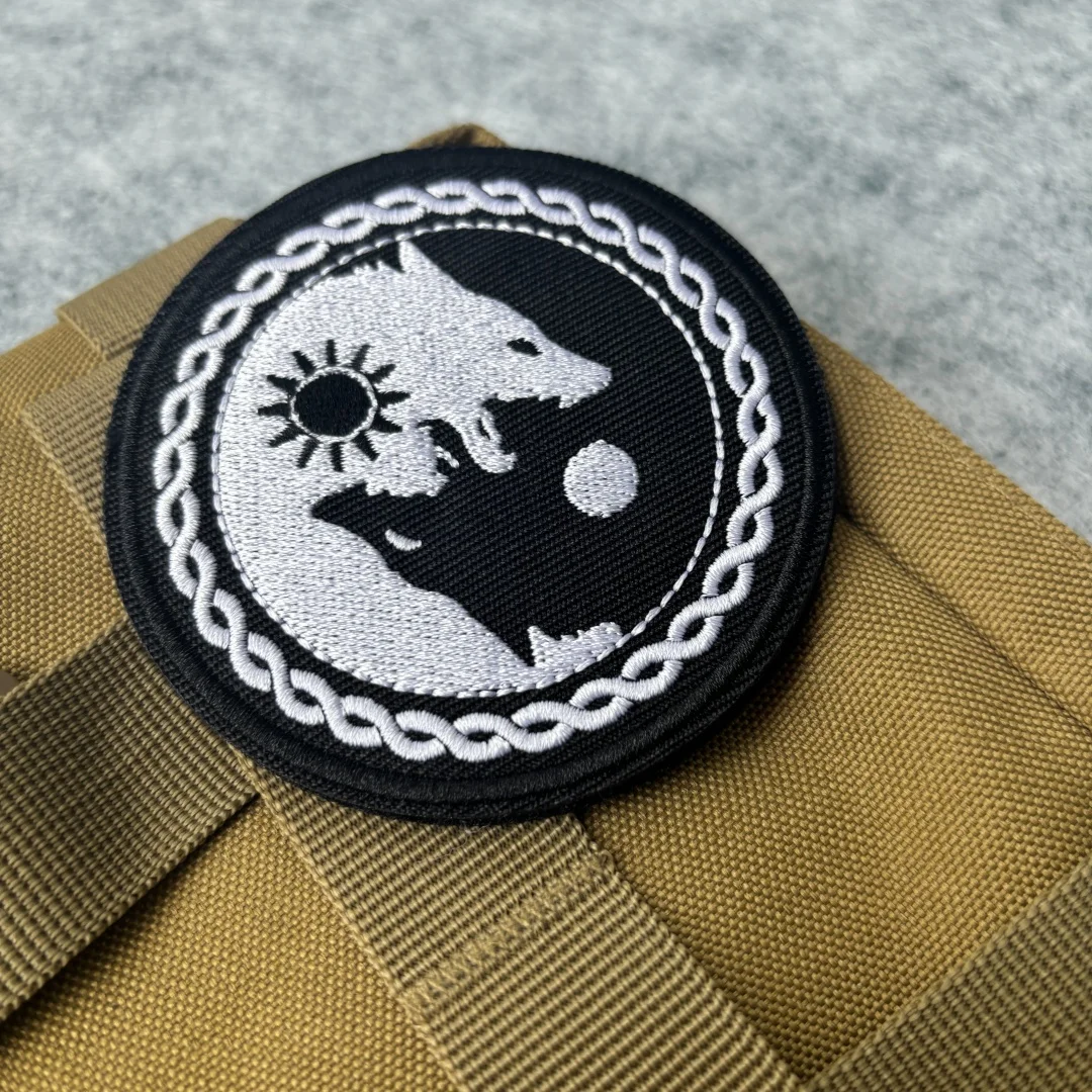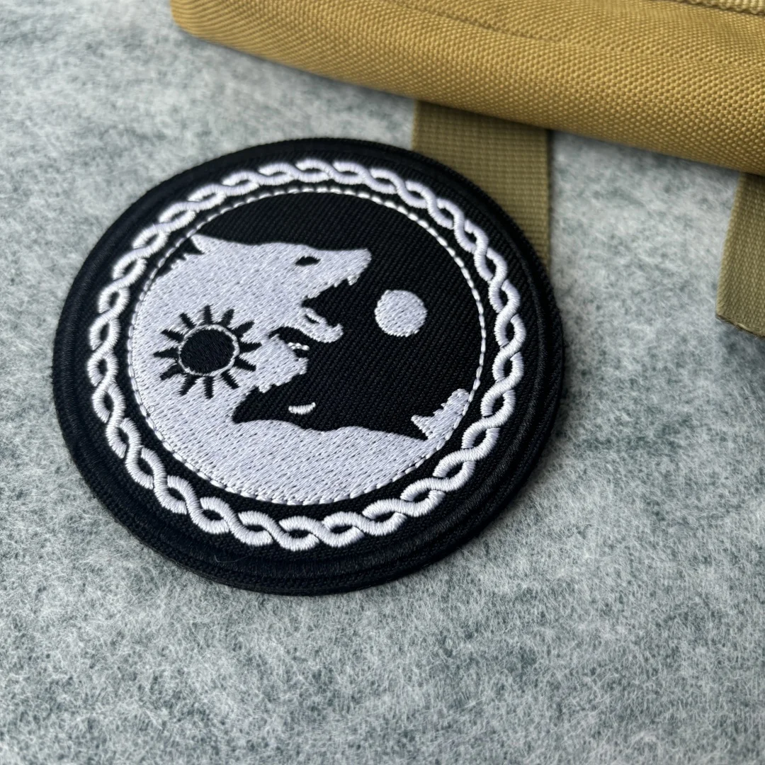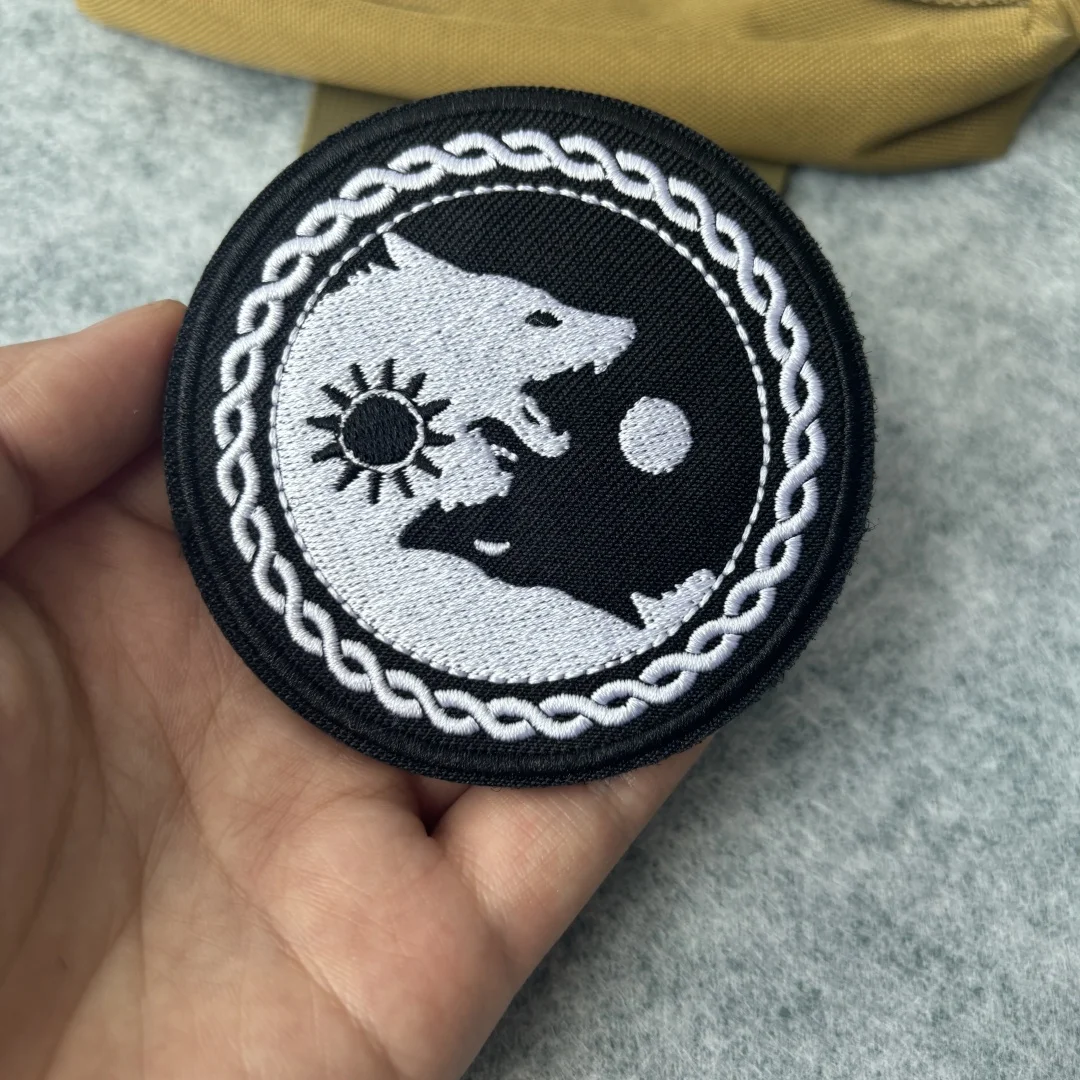 Parche táctico bordado "Yin Yang Fenrir", parche de gancho y bucle, brazalete del ejército, insignia de moral militar, mochila, pegatinas para ropa