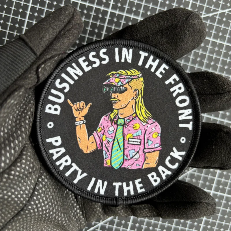 "Negocios en el frente, fiesta en la espalda" Parche táctico Insignia de moral Impresión Parches tácticos Gancho y bucle Ejército Militar