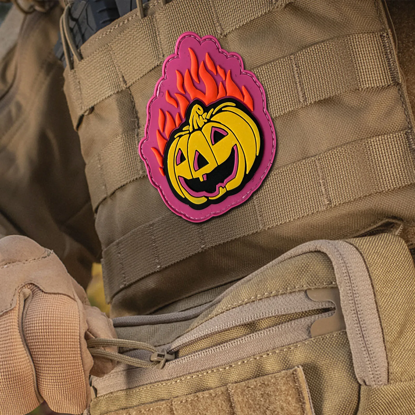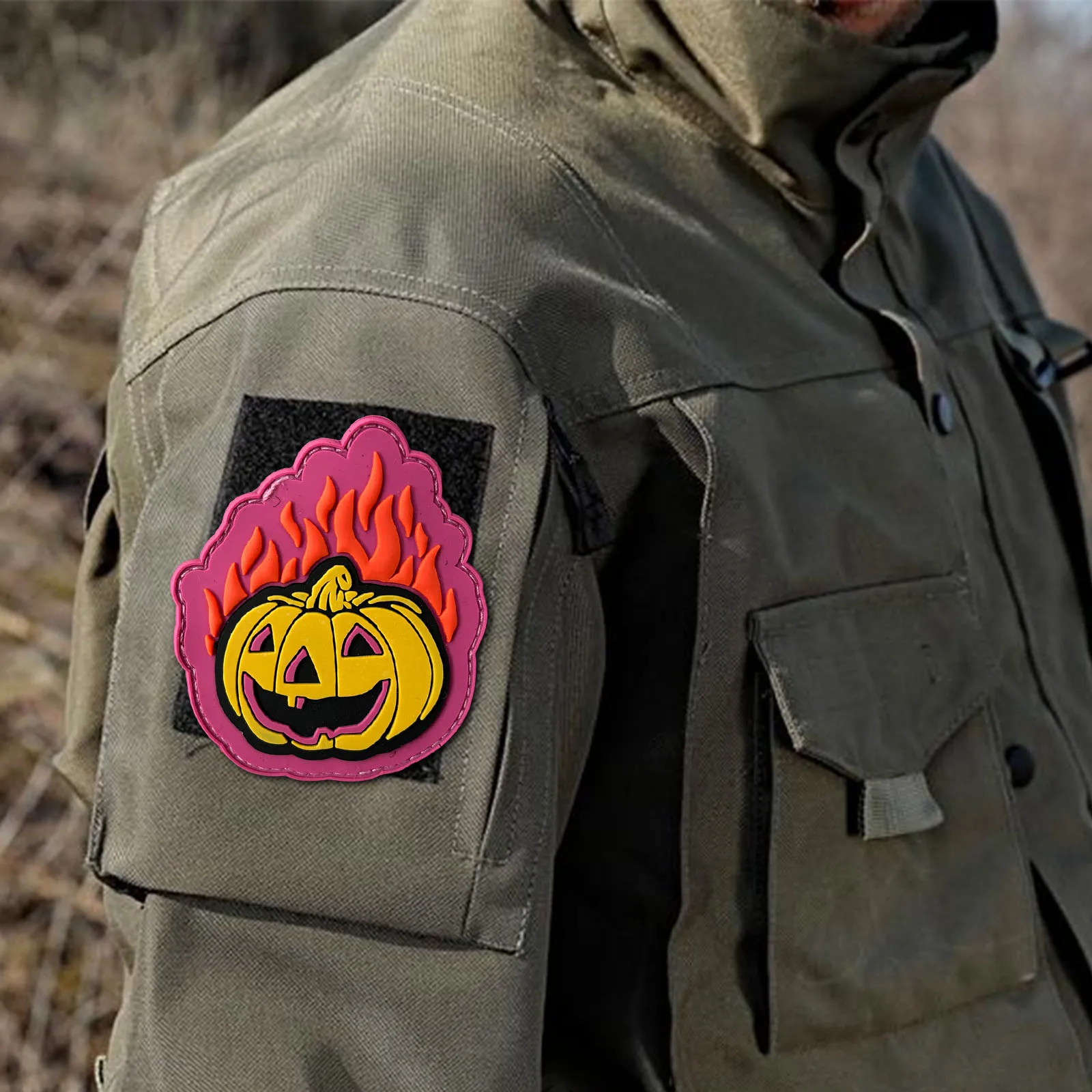 Parche táctico de calabaza llameante, parches de gancho y bucle de PVC para Halloween, insignia de moral Airsoft, brazalete del ejército militar, pegatinas para mochila