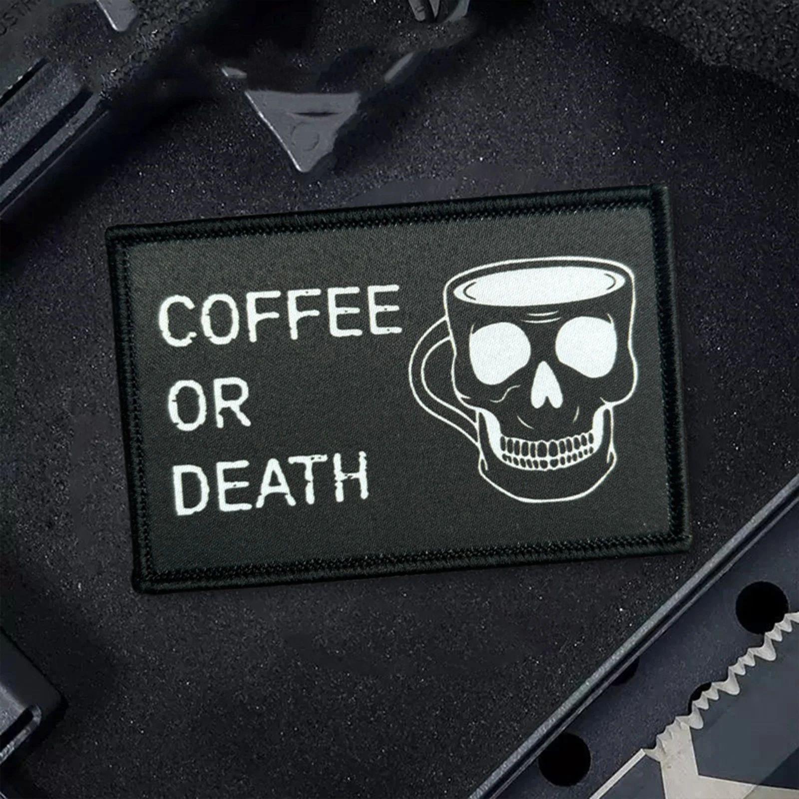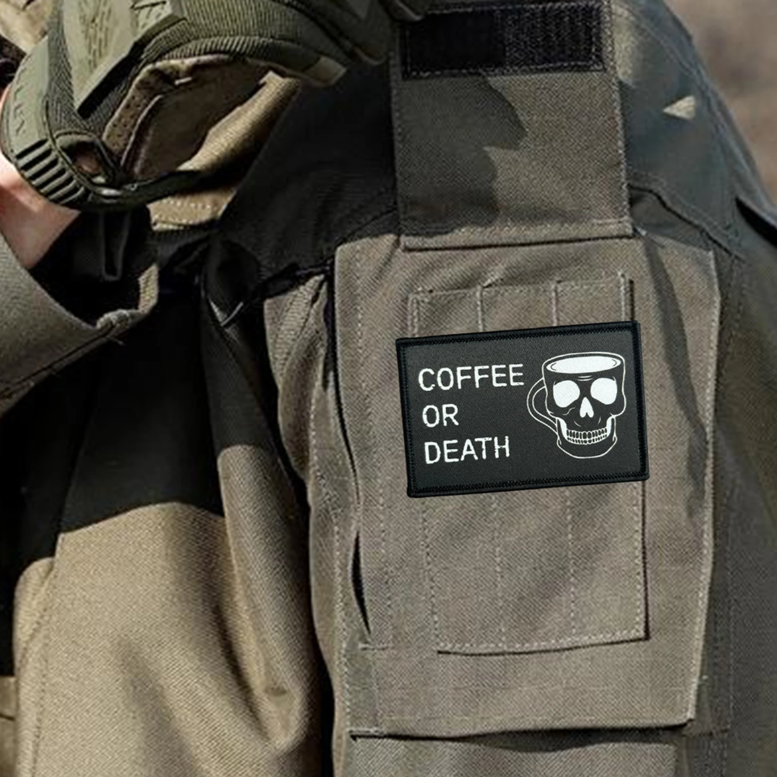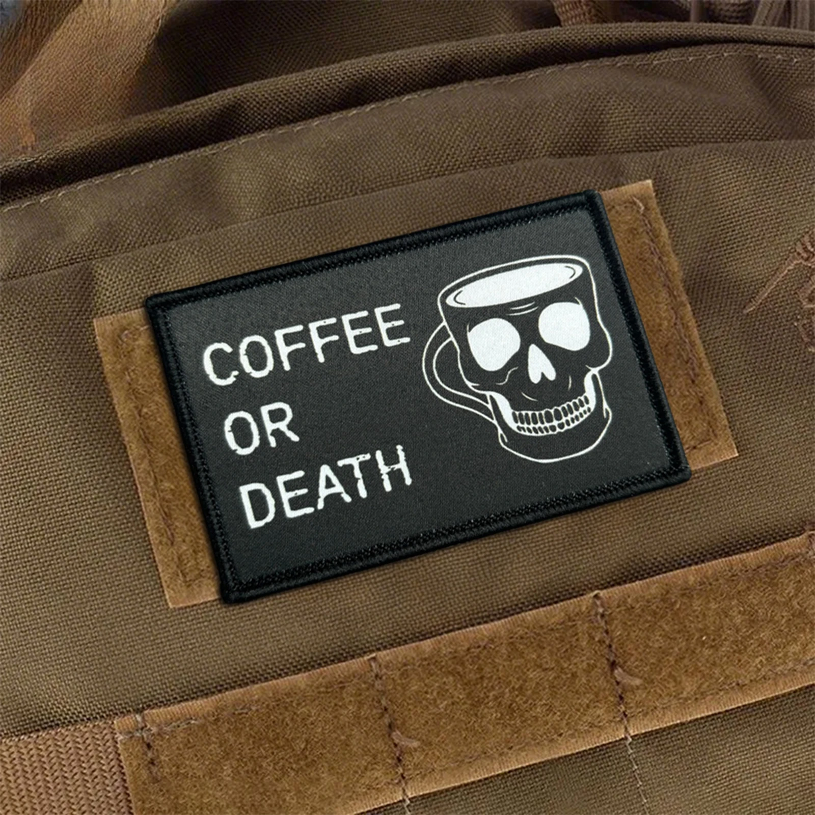 Parche táctico de COFFEE O DEATH con calavera, parches de gancho y bucle para Halloween, brazalete, insignia militar de moral, mochila, pegatinas para ropa