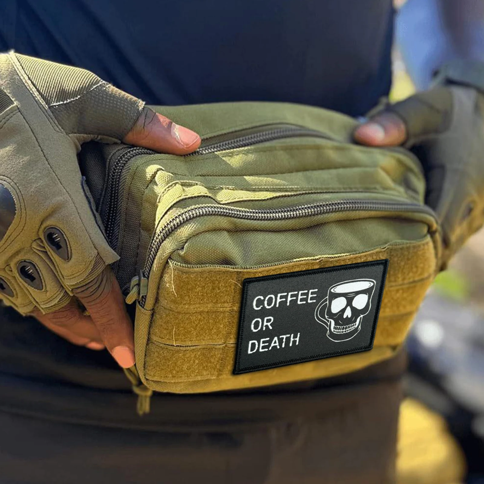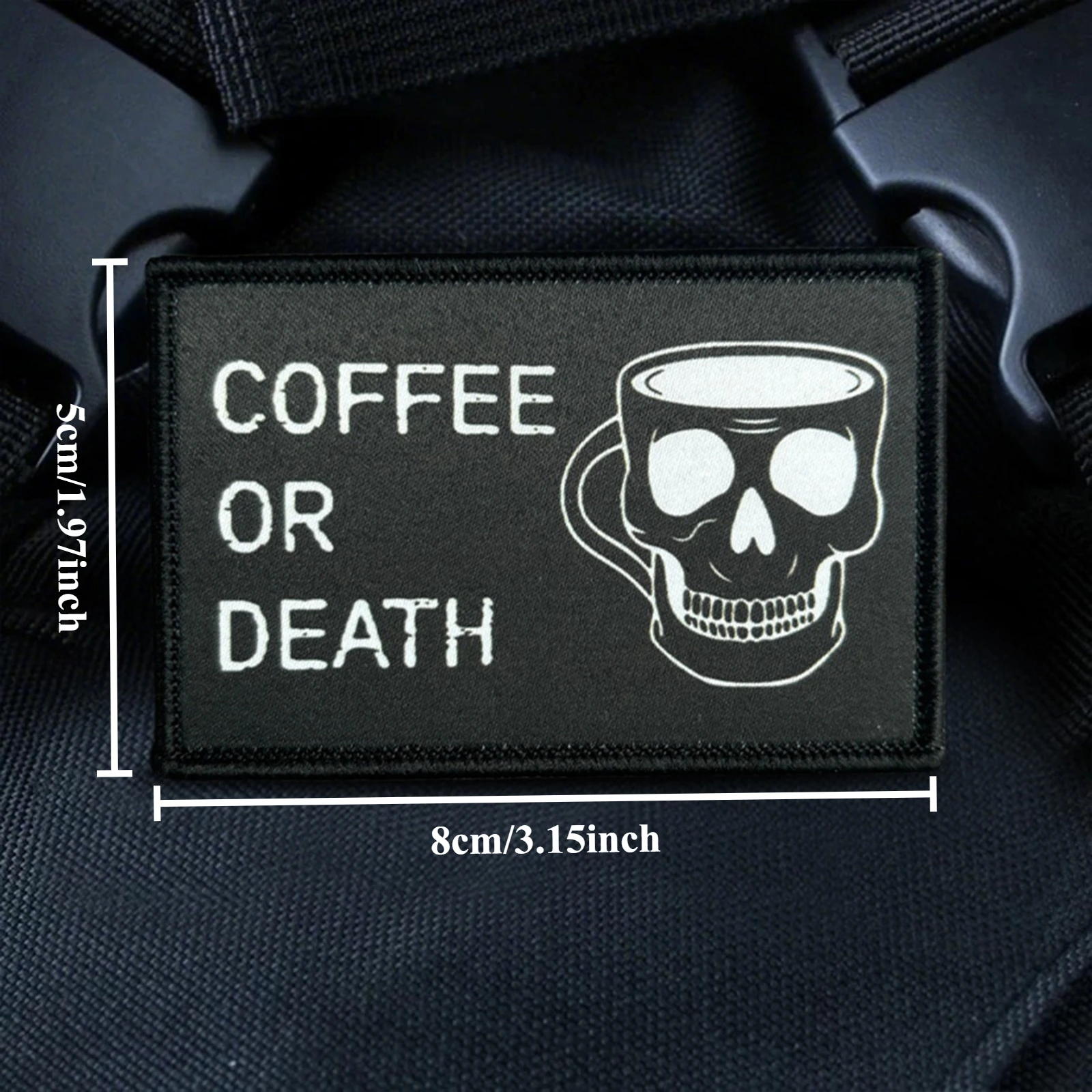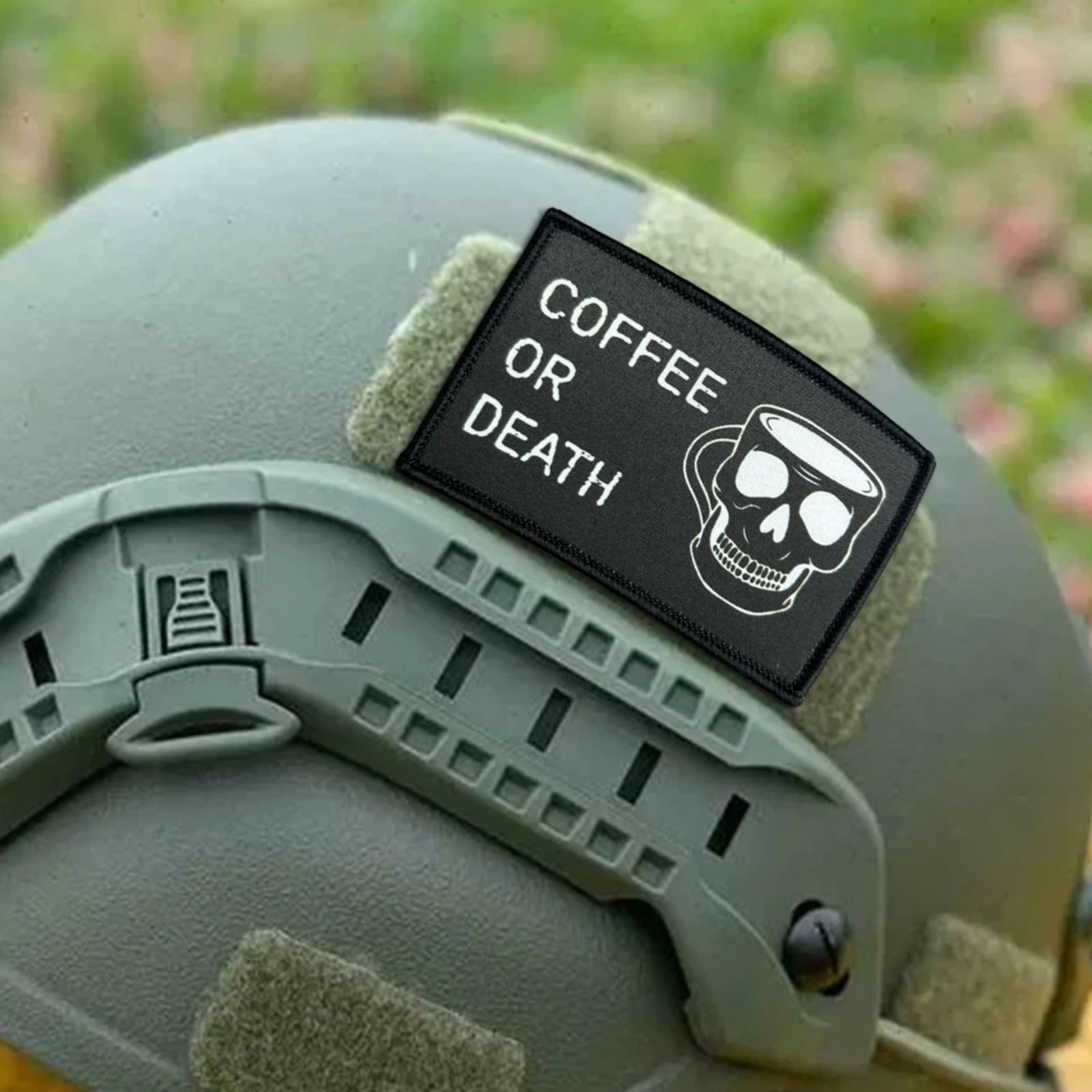 Parche táctico de COFFEE O DEATH con calavera, parches de gancho y bucle para Halloween, brazalete, insignia militar de moral, mochila, pegatinas para ropa