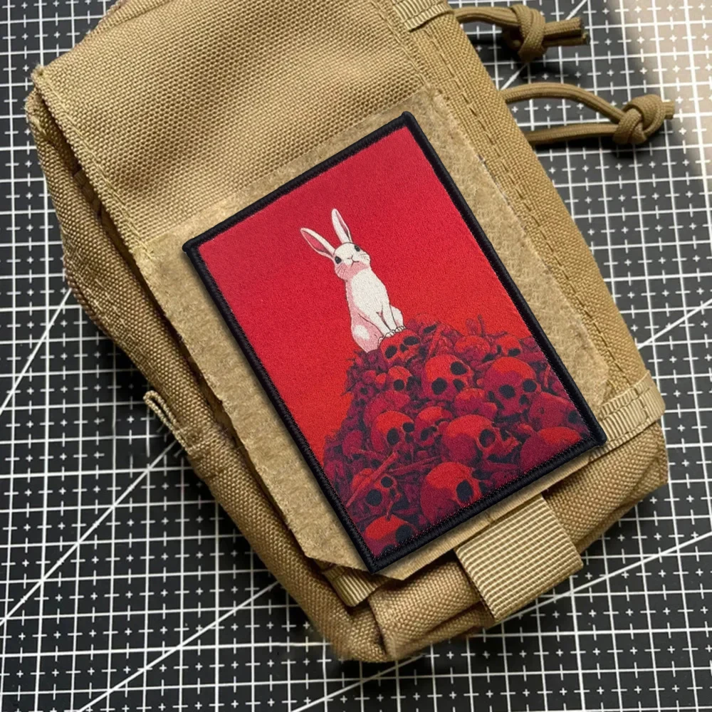 Parche táctico de calavera de conejo, parches divertidos de gancho y bucle, insignia militar de moral, brazalete del ejército, pegatinas para mochila
