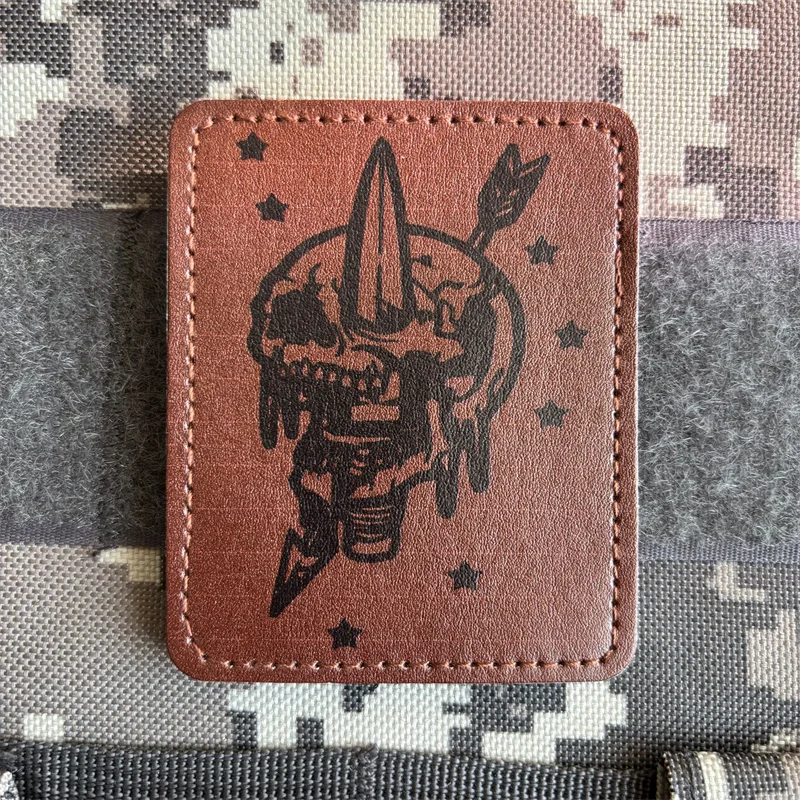 Parche táctico con calavera de daga, gancho y bucle, insignia de moral de cuero PU, parches de calavera perforada, brazalete militar, mochila, pegatina de la muerte