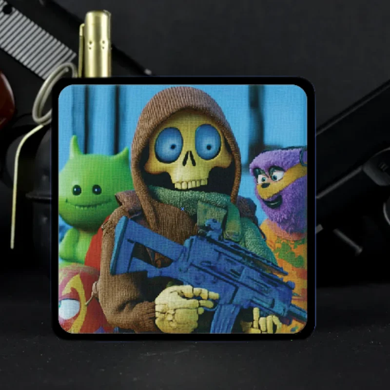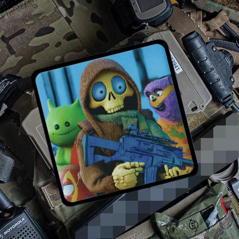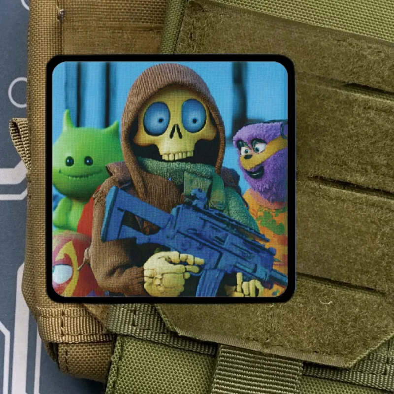 Cráneo con pistola parche táctico estampado de dibujos animados emblema de gancho y bucle militar ejército esqueleto moral insignia brazalete mochila pegatinas