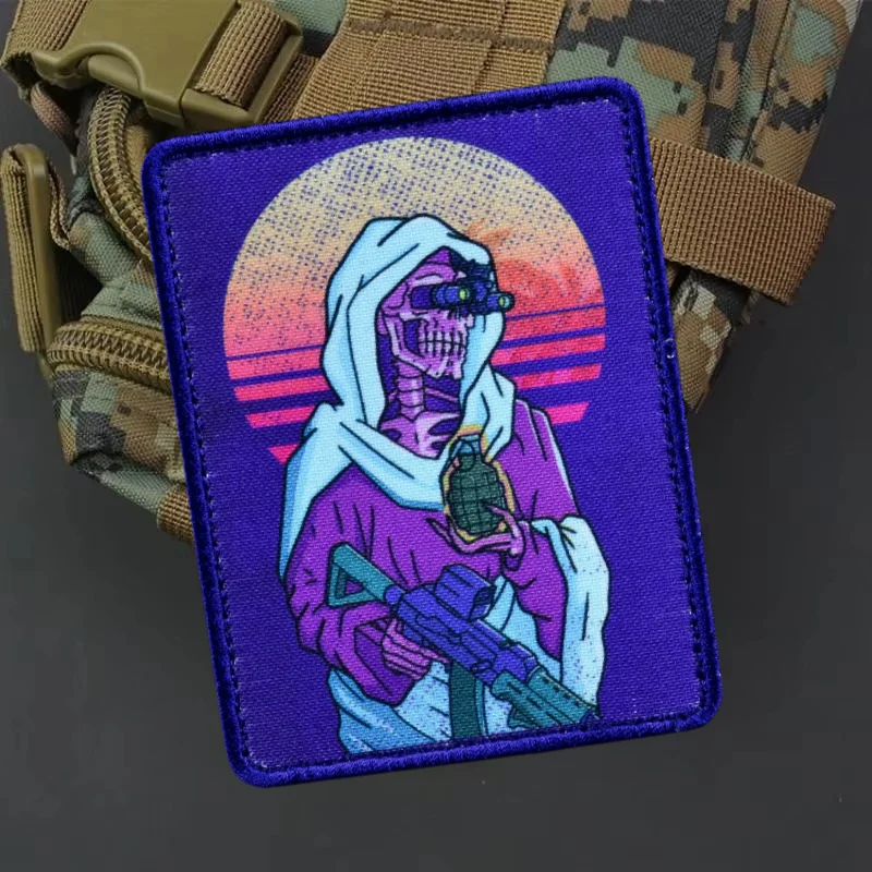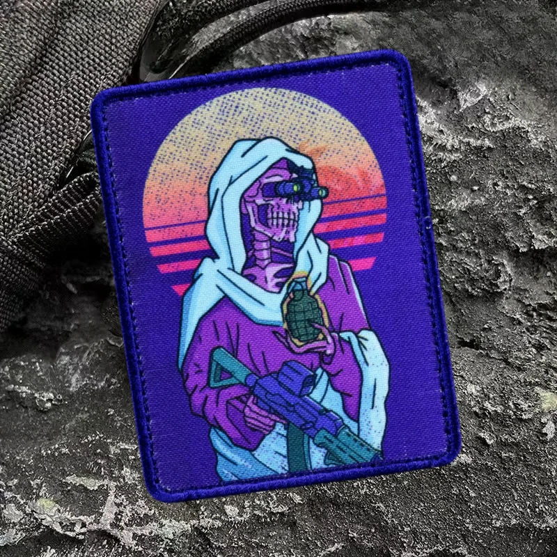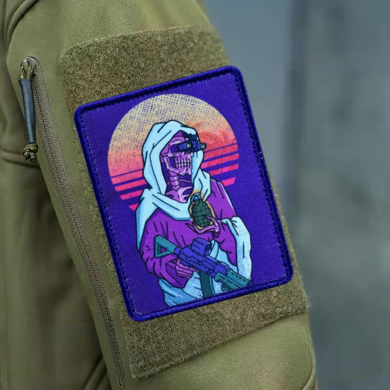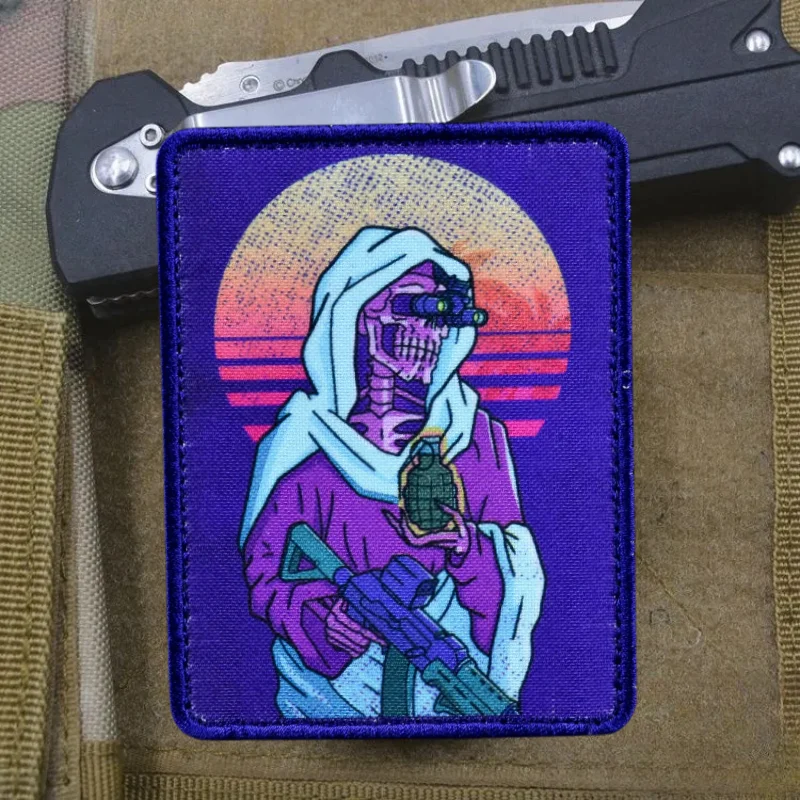 Parche táctico de calavera Punk "Muerte Retro", estampado de esqueleto de NIEBLA, parches de gancho y bucle, insignia militar de moral, pegatina para mochila