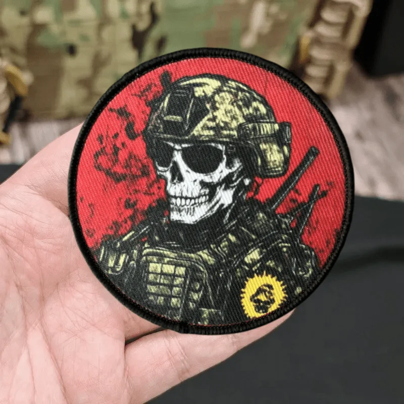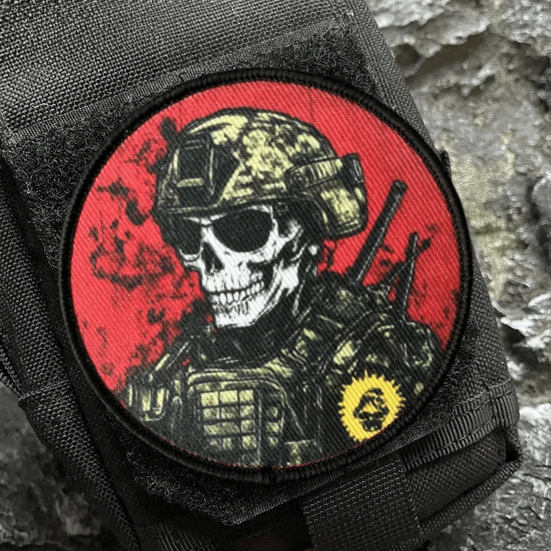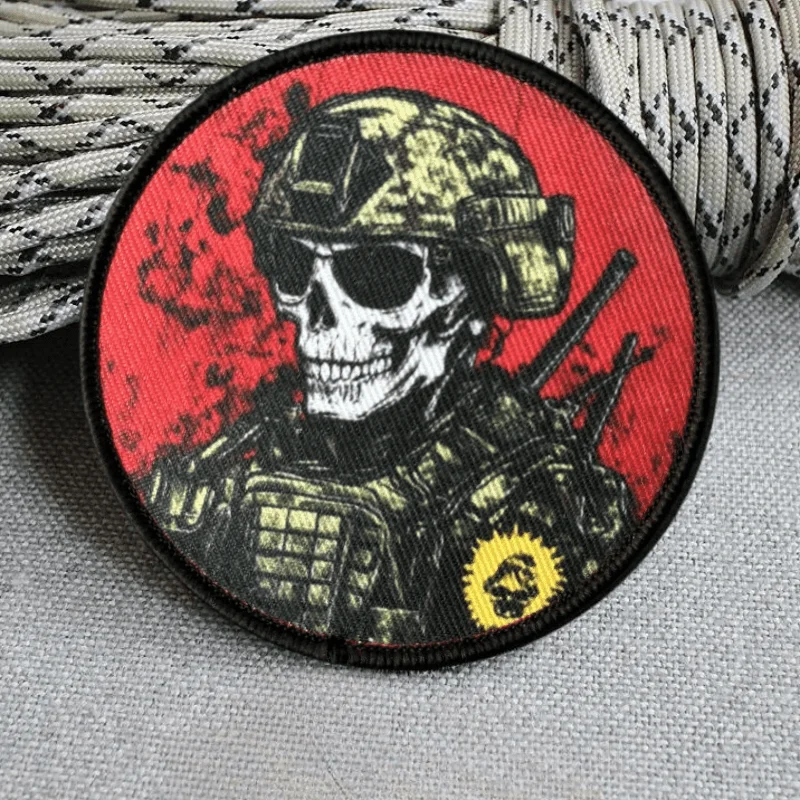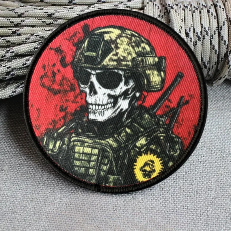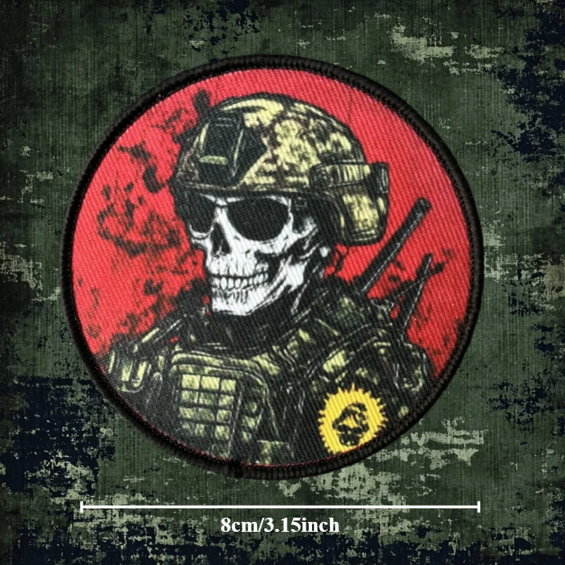 Parche táctico de calavera roja, insignias de gancho y bucle con estampado de niebla, brazalete de moral de esqueleto del ejército militar, insignia, pegatina para mochila
