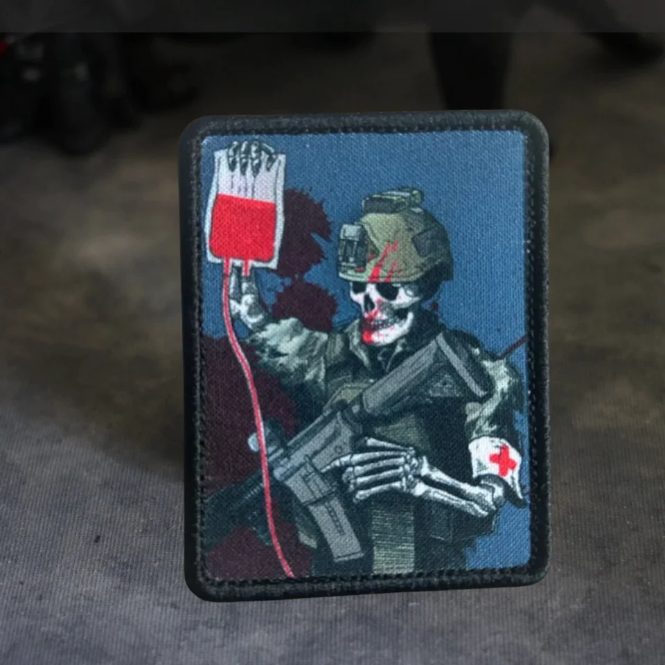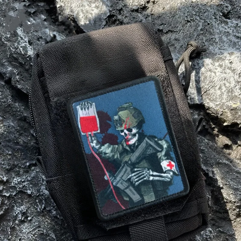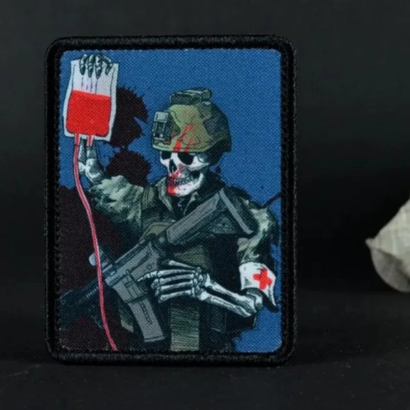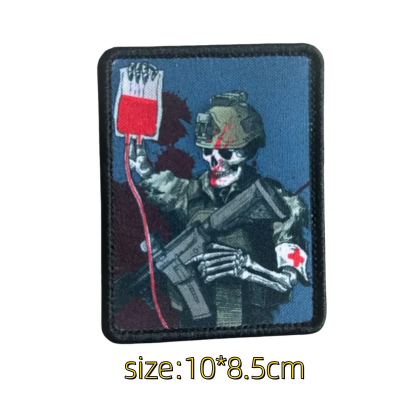 Parche táctico de Chevron con gancho y bucle, insignia de mochila de moral de soldado esqueleto de servicios médicos militares, Ruso