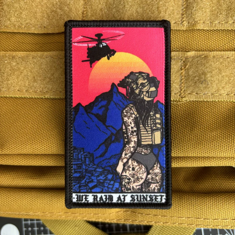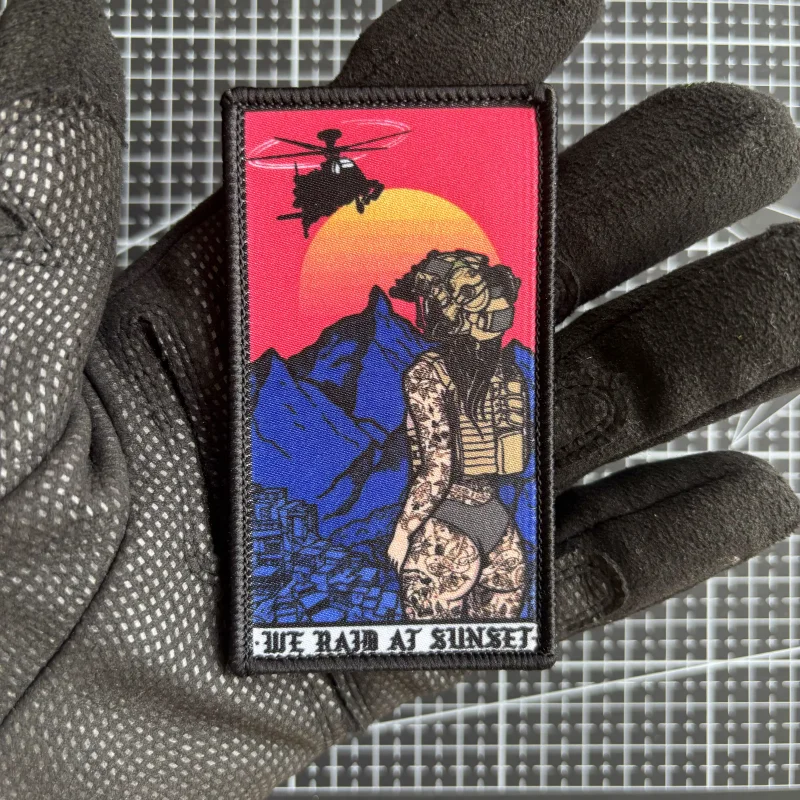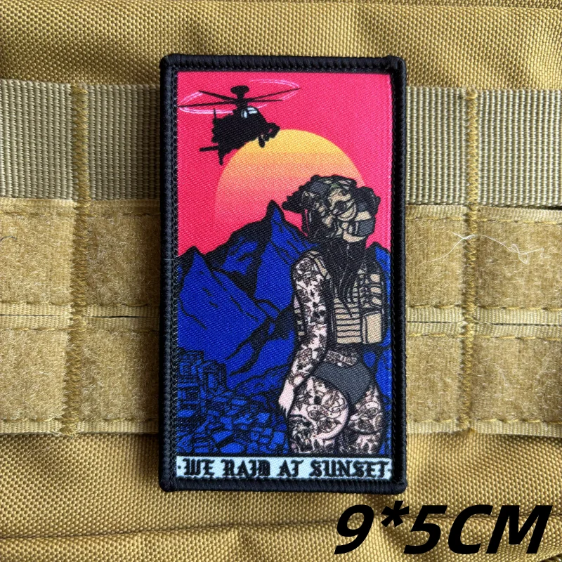Parche táctico para chica, rasgamos al atardecer, insignia de moral, parches de impresión, pegatina de mochila militar del ejército con gancho y bucle