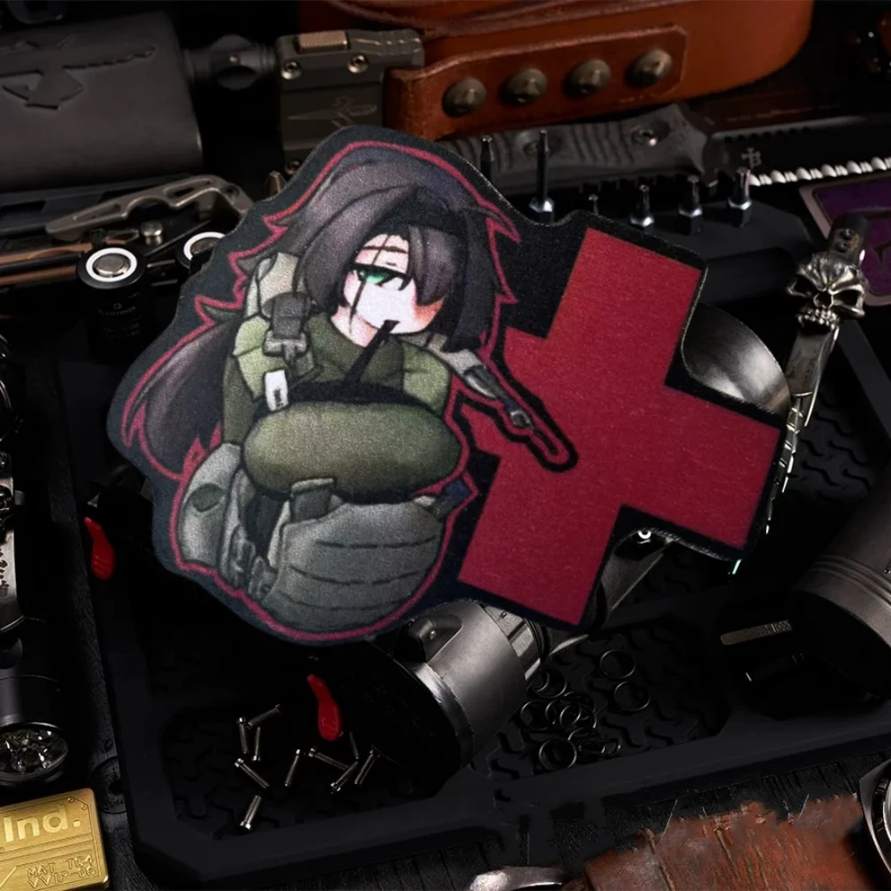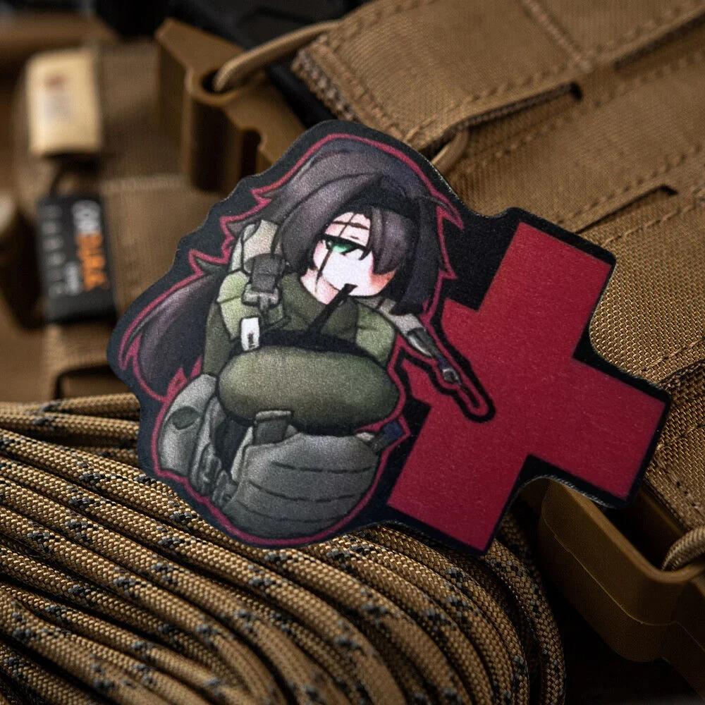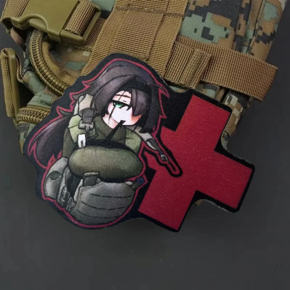 Parche táctico para chica de juego de Gunfight, emblema de gancho y bucle impreso para chica médica, insignia de moral militar, brazalete, pegatinas para mochila