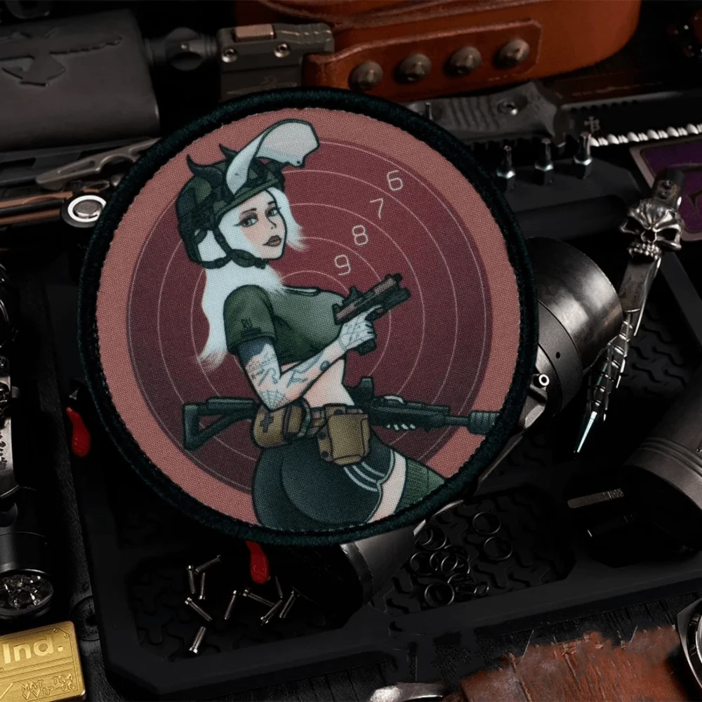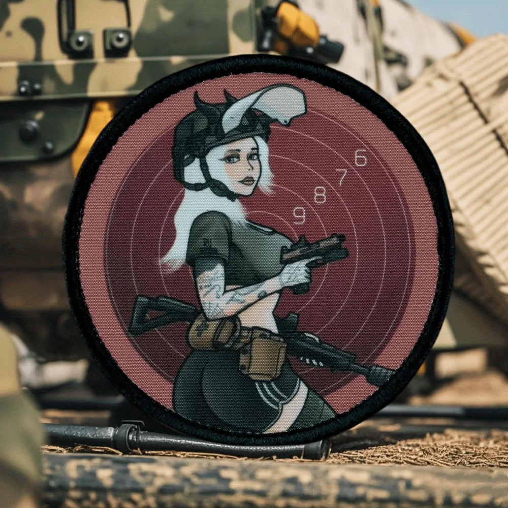 Parche táctico para chica de tiro al objetivo, parches de gancho y bucle impresos, insignia de moral militar, apliques, brazalete, pegatinas para mochila