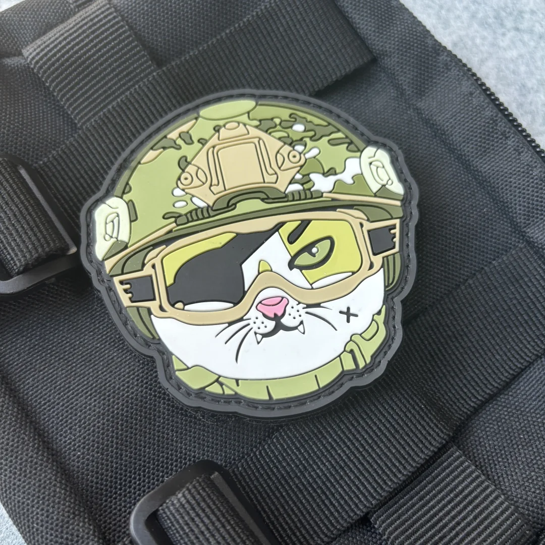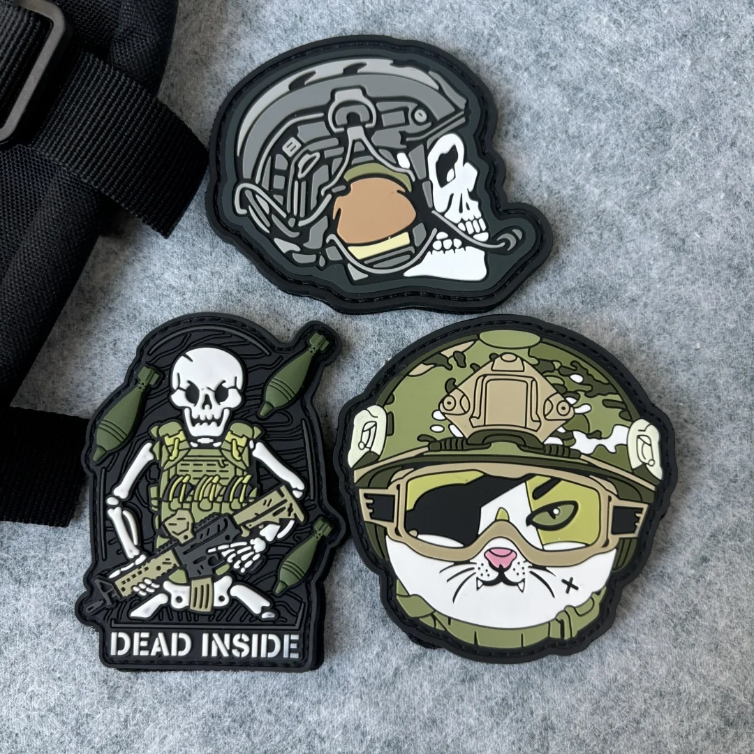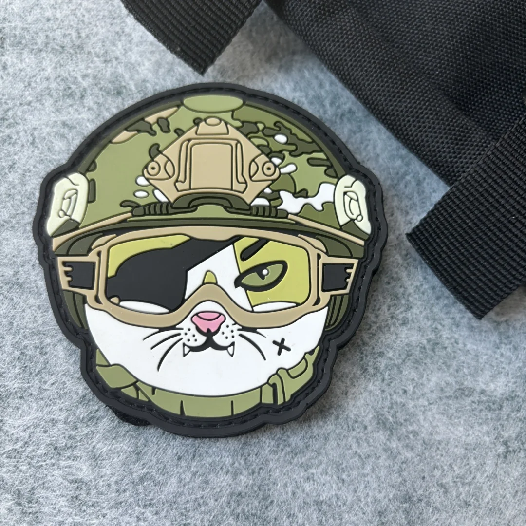 Parche táctico de comandante de esqueleto, gancho y bucle de soldado de gato, parches de PVC, brazalete, insignia de moral militar, mochila, pegatinas para ropa
