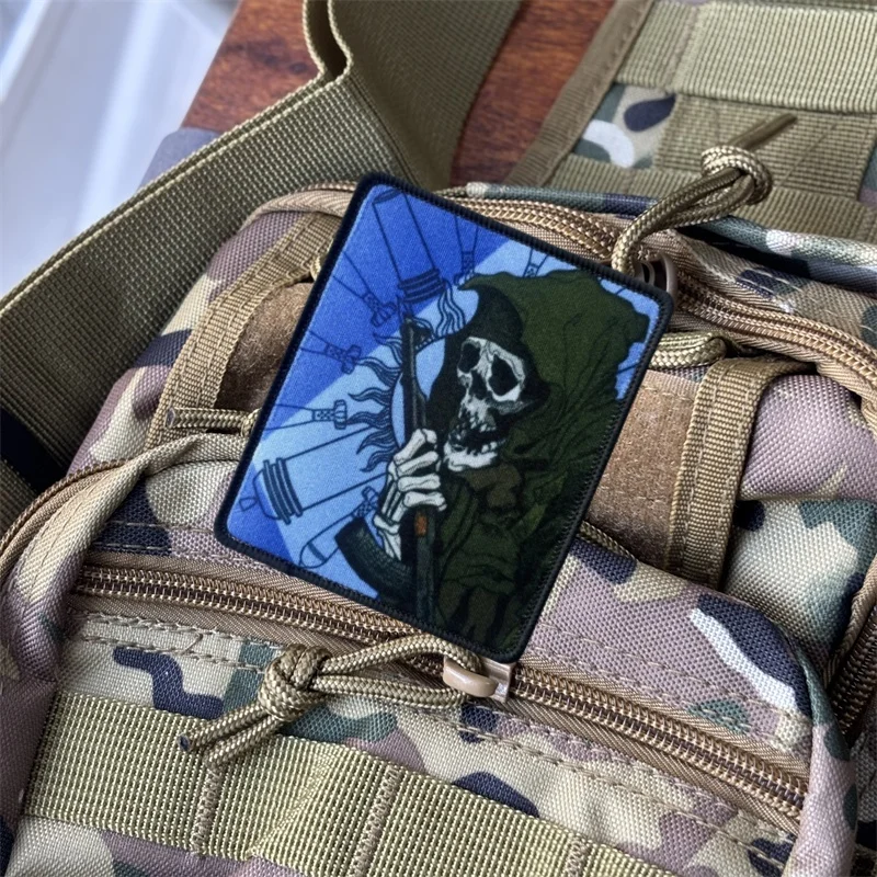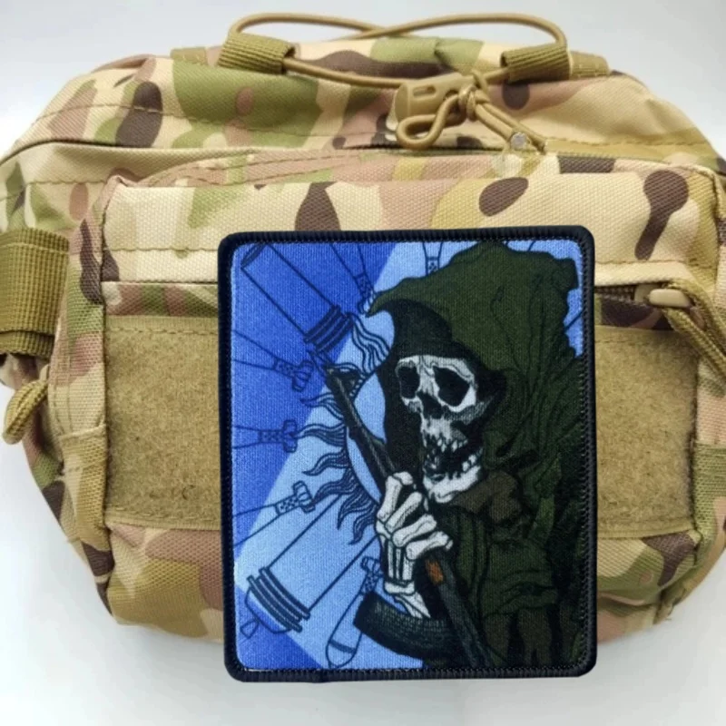 Parche táctico "cráneo con pistola" para ropa, insignia de moral militar, brazalete con estampado, parche con gancho, mochila