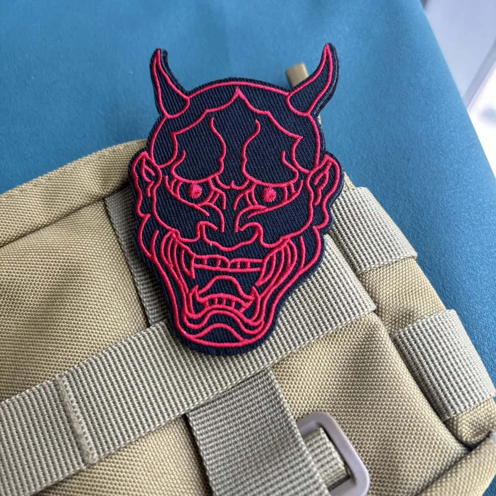 Parche táctico "Demon", parches bordados con máscara de fantasma roja para mochila, brazalete con gancho y bucle, insignia militar de moral, pegatinas para sombrero
