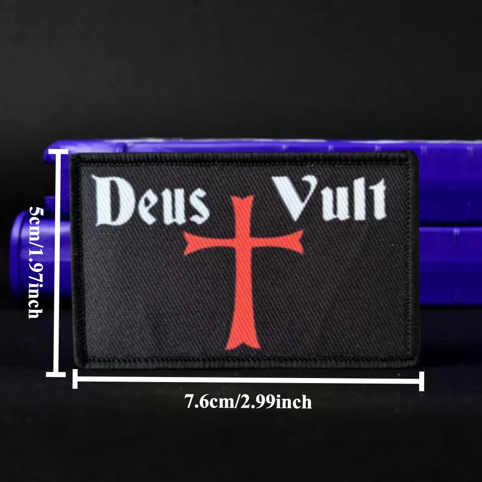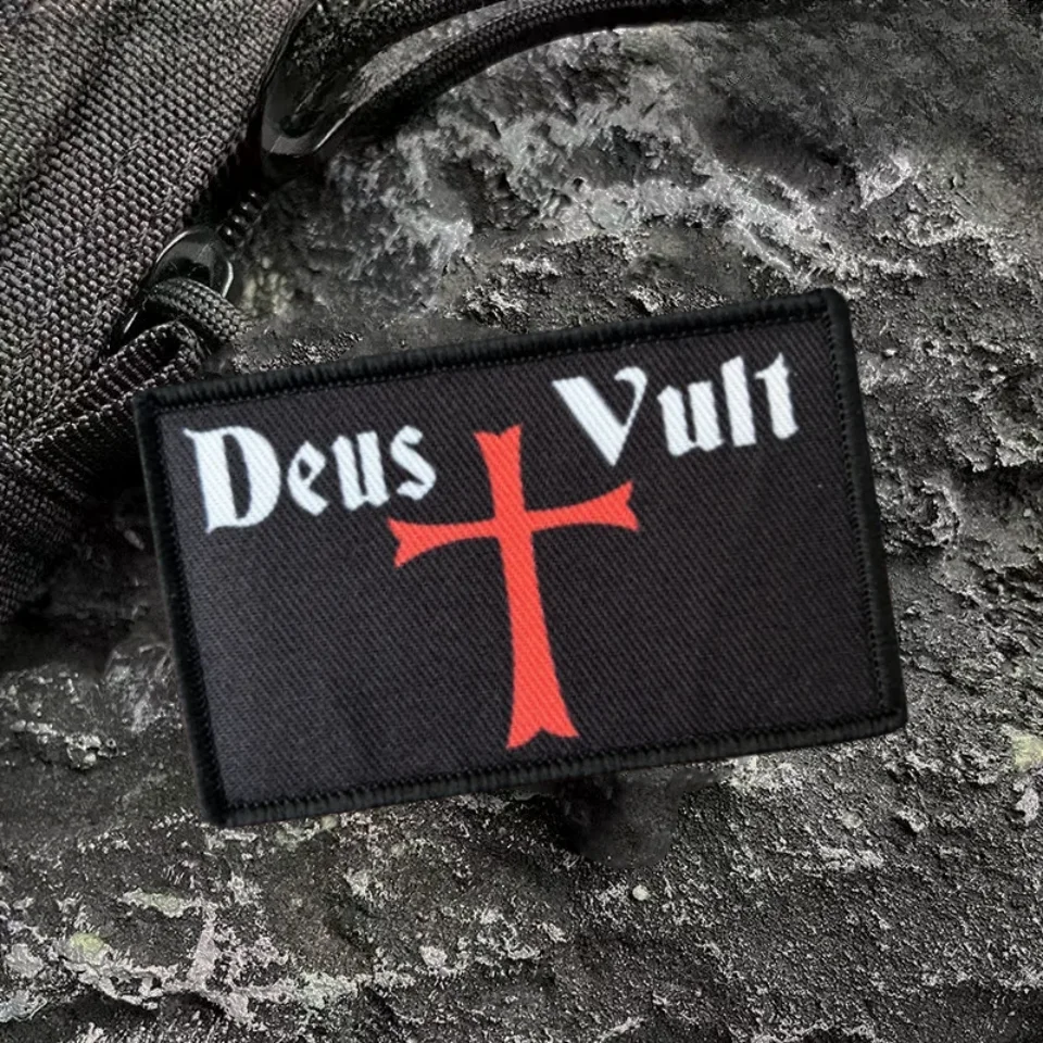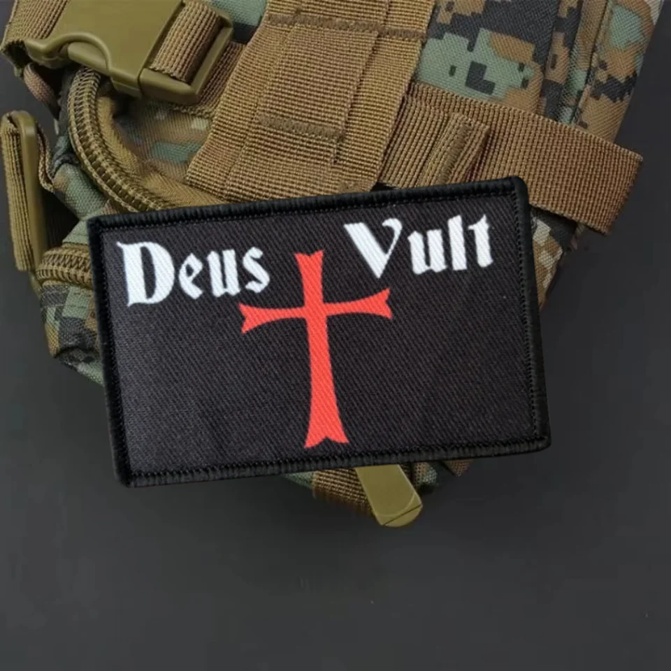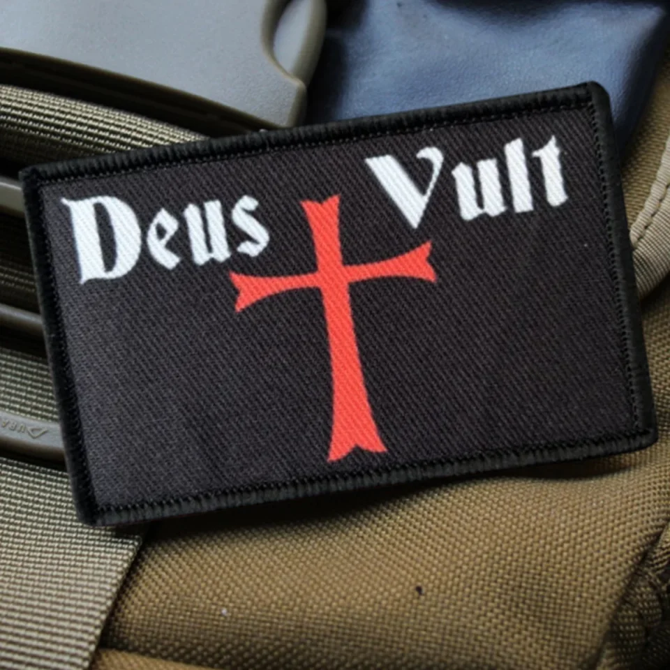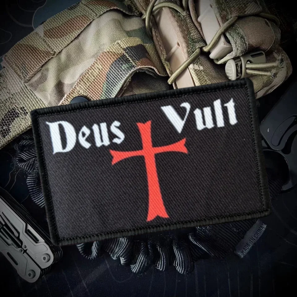 Parche táctico Deus Vult, emblema de gancho y bucle impreso, insignia de moral militar, brazalete, pegatinas para mochila