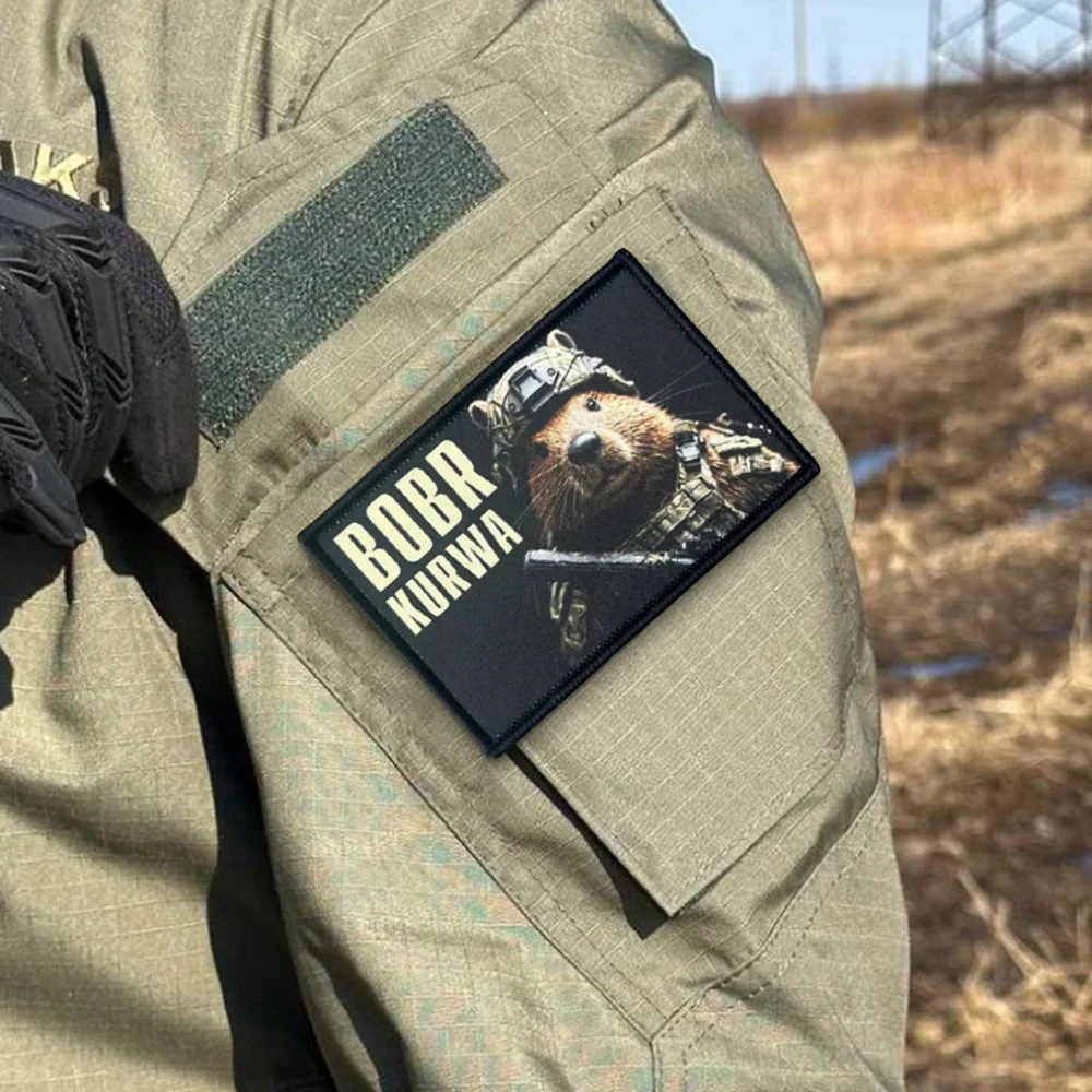 Parche táctico de dibujos animados Beaver BOBR KURWA, parches de gancho y bucle, insignia militar de moral, brazalete del ejército, pegatinas para mochila