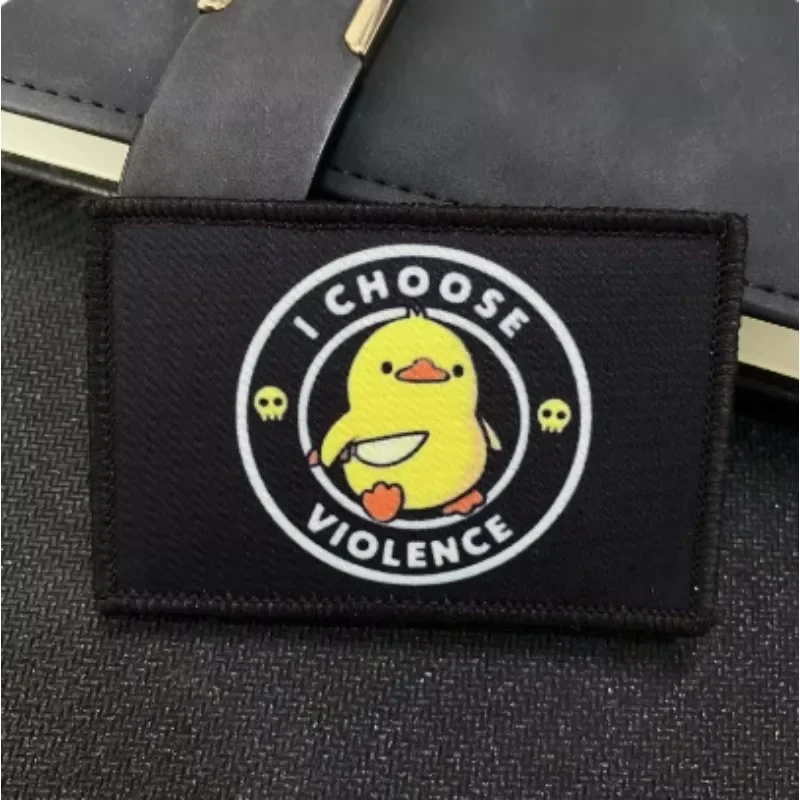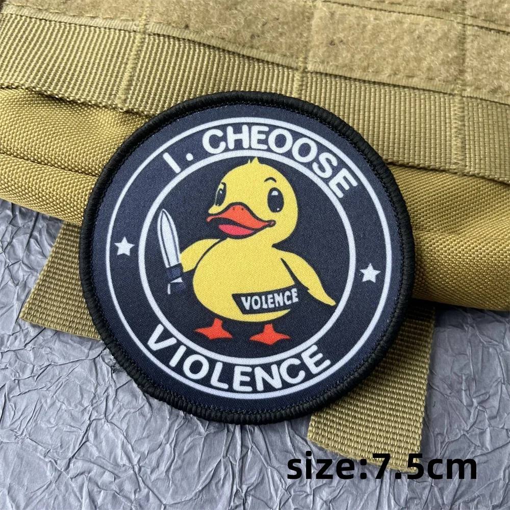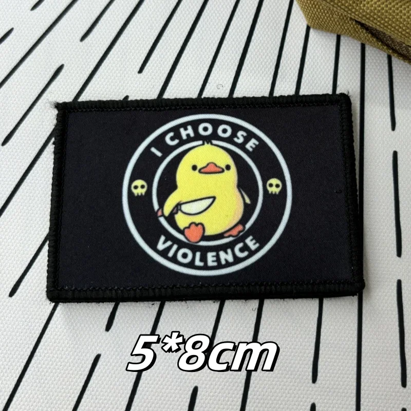 Dibujos animados daga pato Guerrero parche táctico divertido pato amarillo brazalete militar elijo violencia moral insignia mochila pegatinas