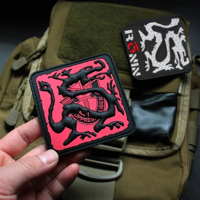 Parche táctico de dragón negro Ronin, parche reflectante de gancho y bucle en ropa, insignia de moral chino de PVC, pegatina de mochila militar
