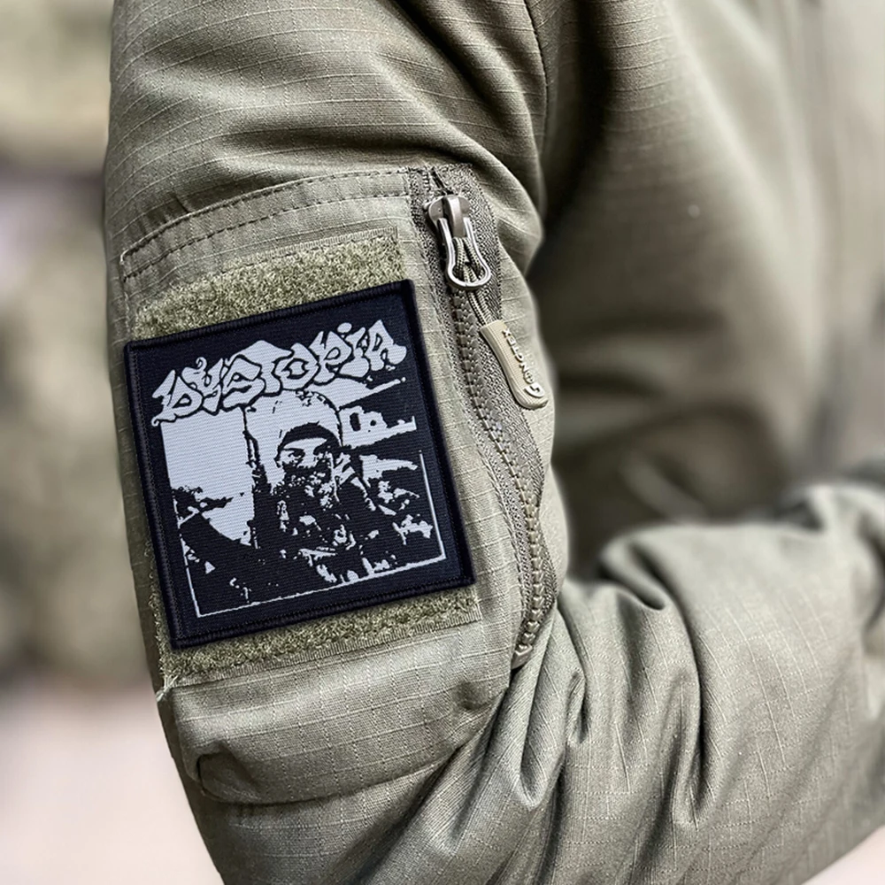 Parche táctico Dystopia Punk Rock Morale, parches de gancho y bucle, insignia militar, pegatinas para mochila, brazalete, aplique para casco