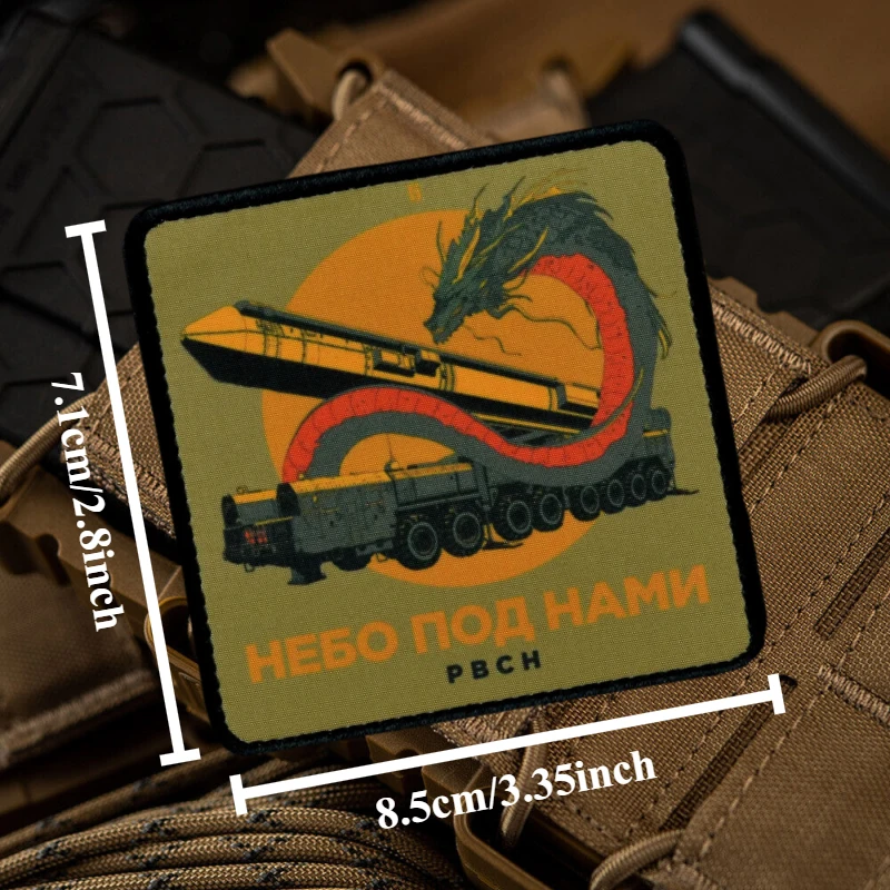 Parche táctico "El cielo está bajo de nosotros, fuerzas de misiles estratégicas", pegatinas para mochila con insignia militar con gancho y bucle impreso de moral de dragón