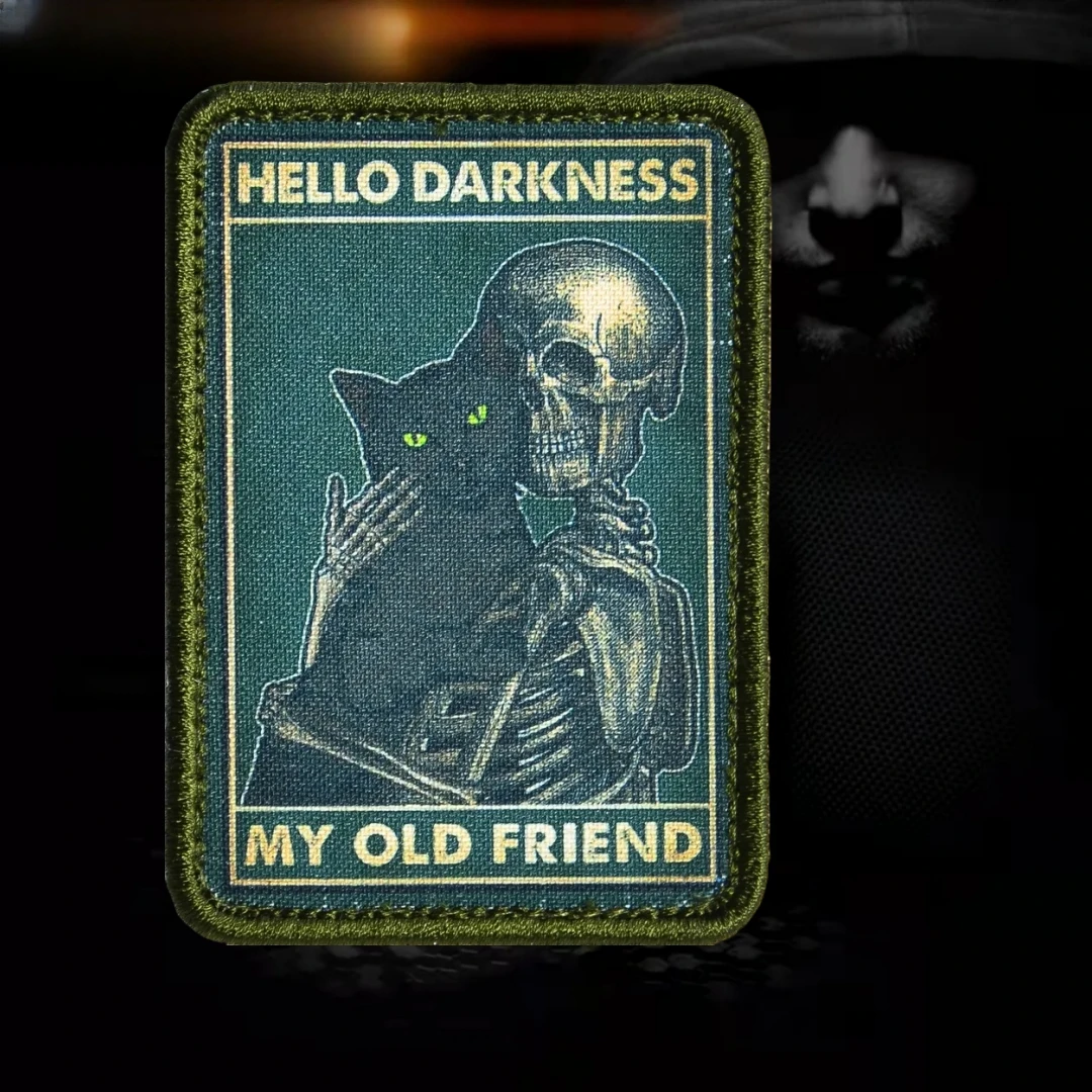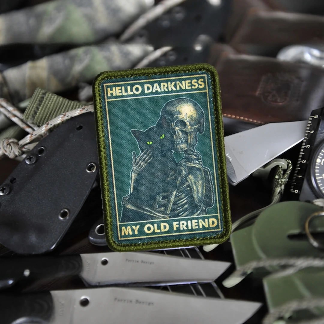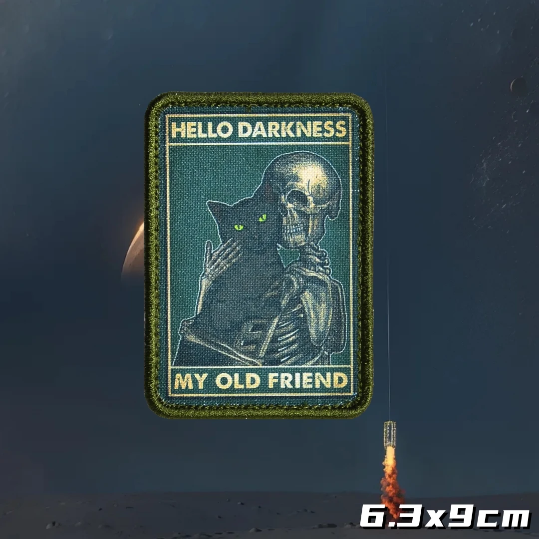 Hola oscuridad mi viejo amigo emblema parche táctico cráneo moral insignia mochila pegatina impresión parches de gancho y bucle para ropa