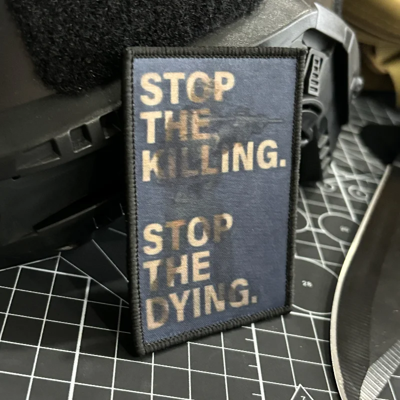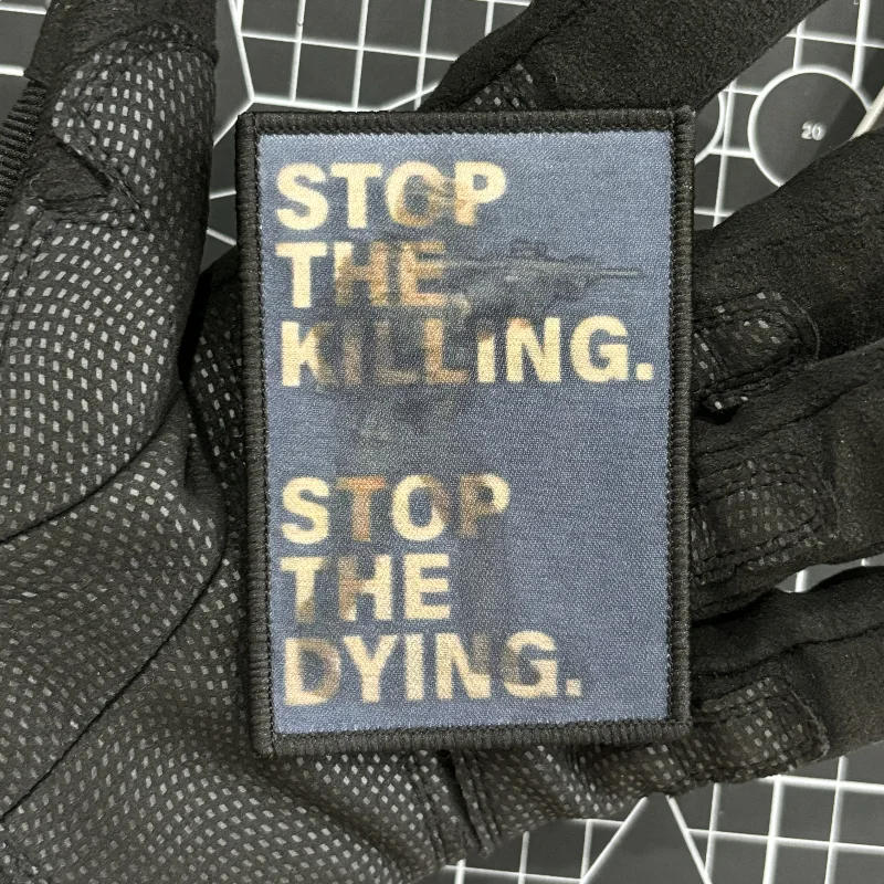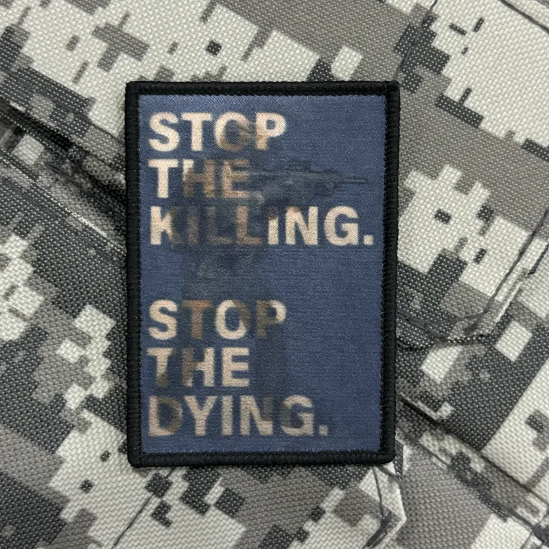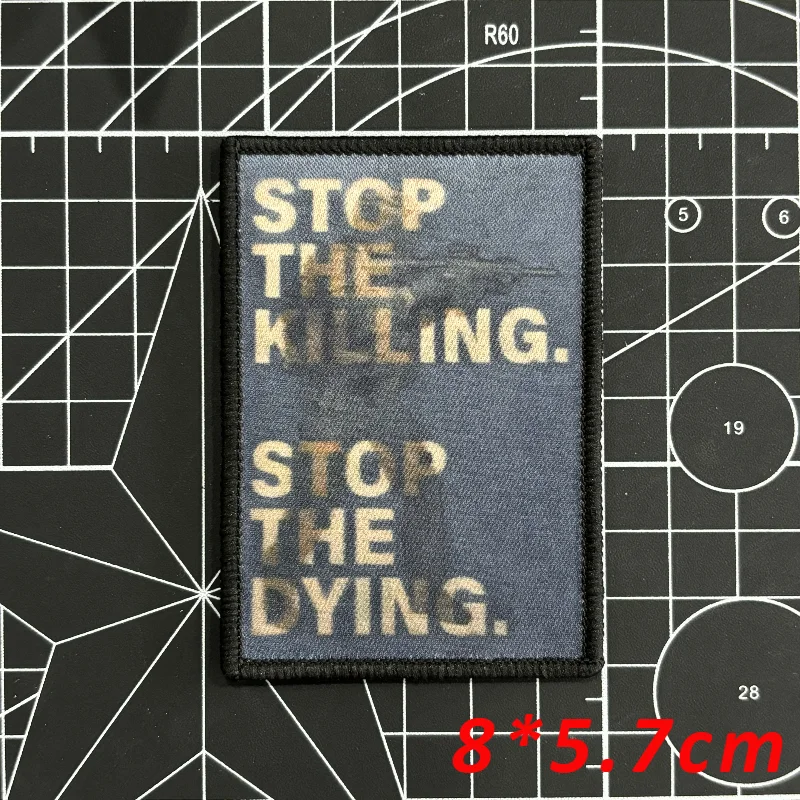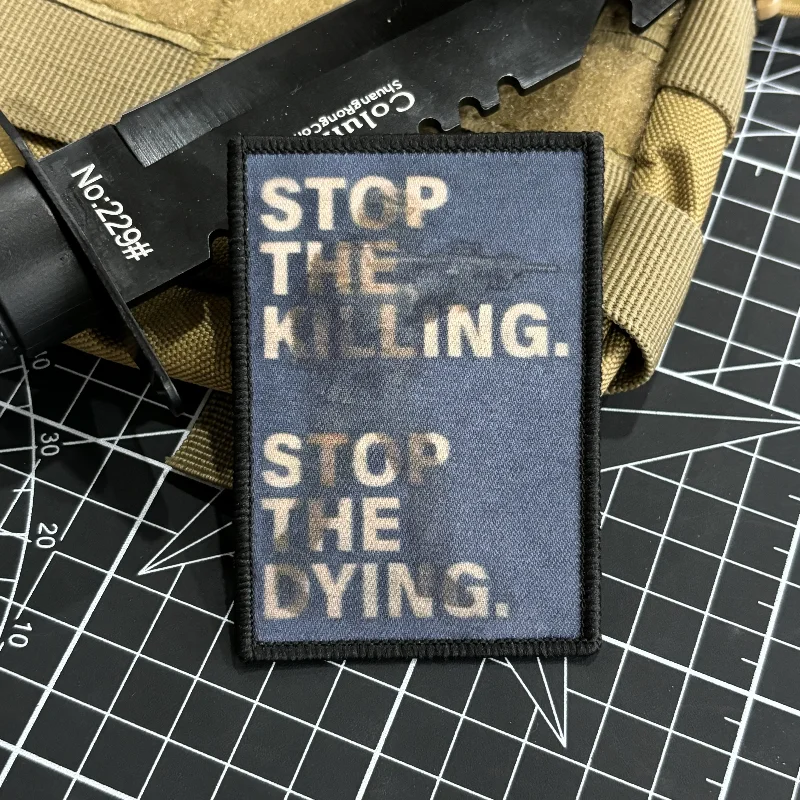 Parche táctico con eslogan de guerra Stop The Killing Morale Badge Parches de impresión de gancho y bucle Brazalete militar Mochila Pegatina