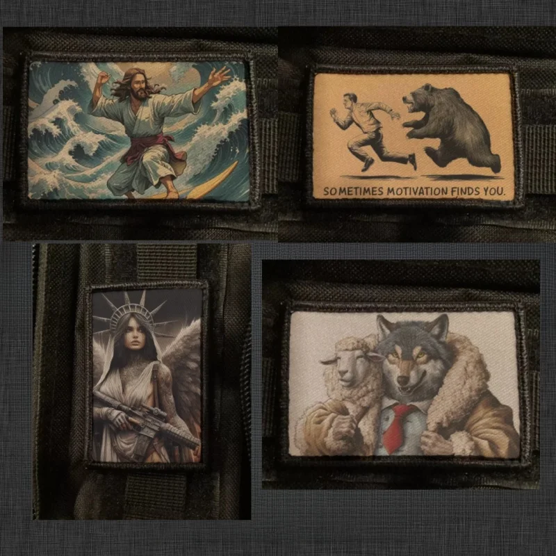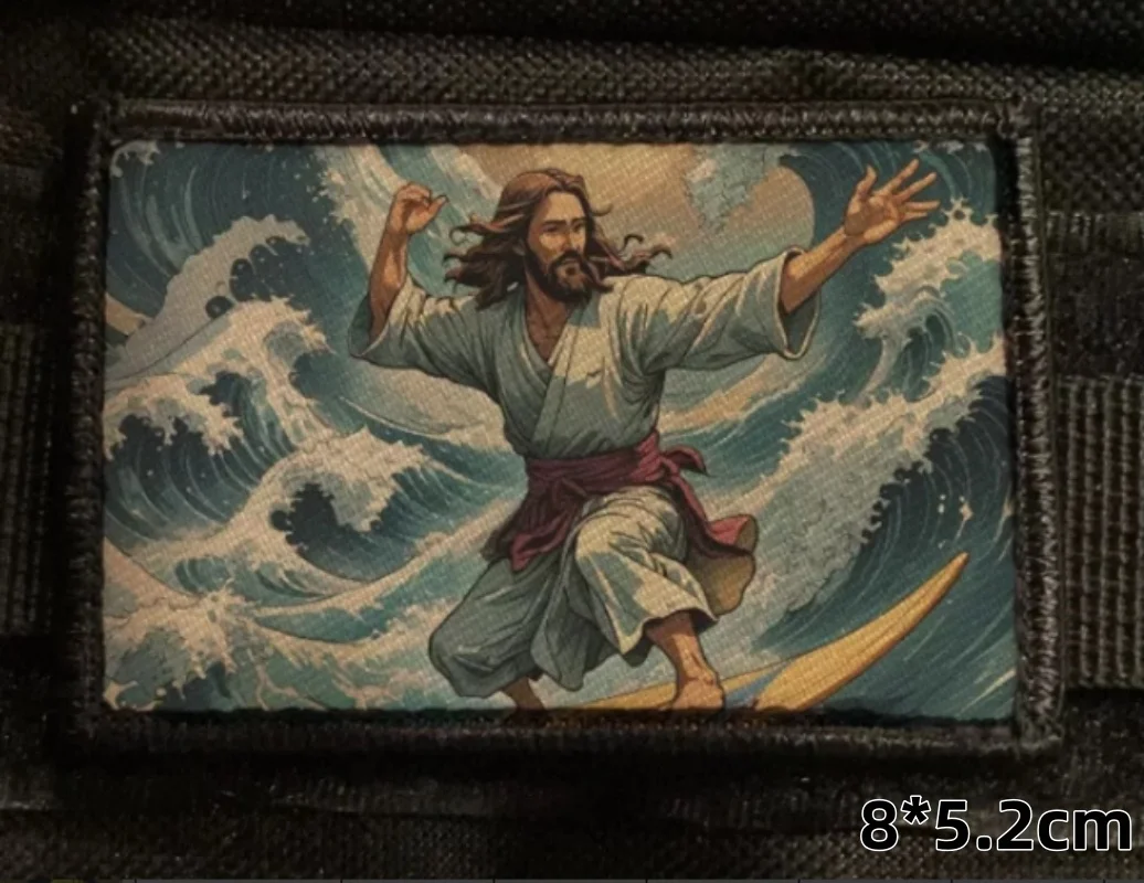 Surf Jesús Impresión Hook & Loop Emblema Lobo divertido en parche táctico de oveja Diosa militar con insignias de moral de pistola en la mochila