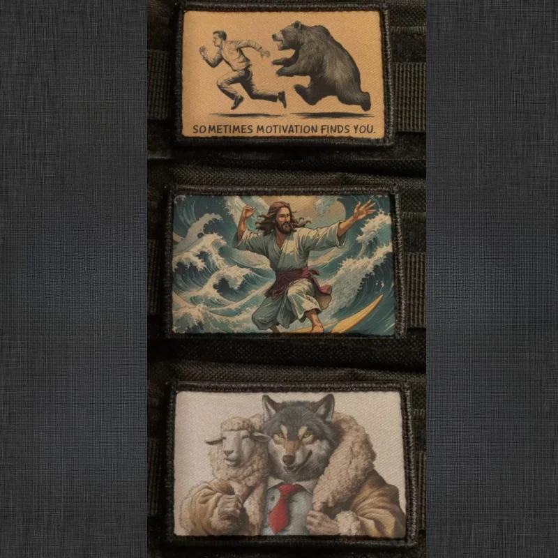 Surf Jesús Impresión Hook & Loop Emblema Lobo divertido en parche táctico de oveja Diosa militar con insignias de moral de pistola en la mochila