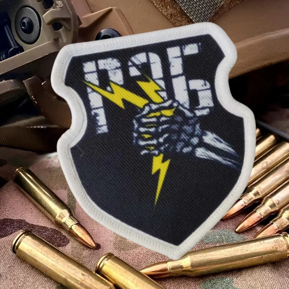 Parche táctico estampado con relámpago en la mano, brazalete divertido con gancho y bucle, insignia de moral militar, pegatinas para ropa y mochila