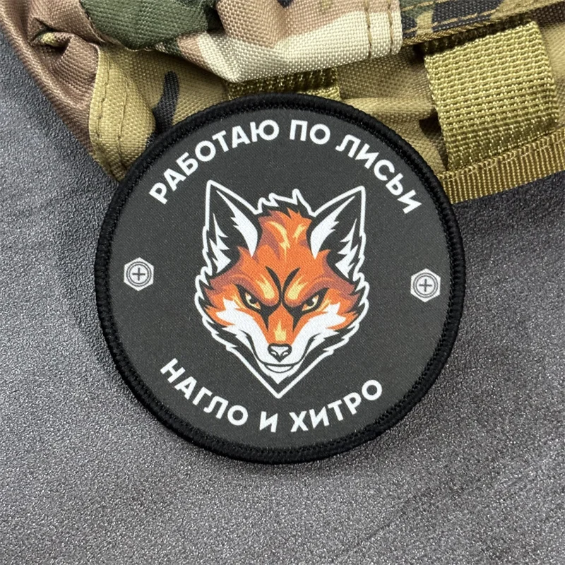 Parche táctico con estampado de zorro para ropa, insignia de moral militar, parches con gancho, pegatinas para mochila, brazalete