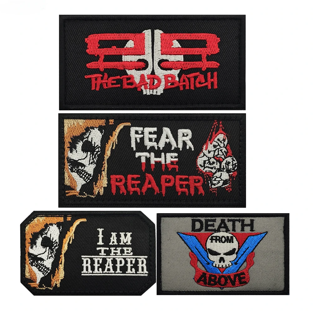 Parche táctico FEAR THE REAPER, parches de gancho y bucle bordados, insignia de moral de Dios de la muerte, mochila militar, pegatinas para ropa