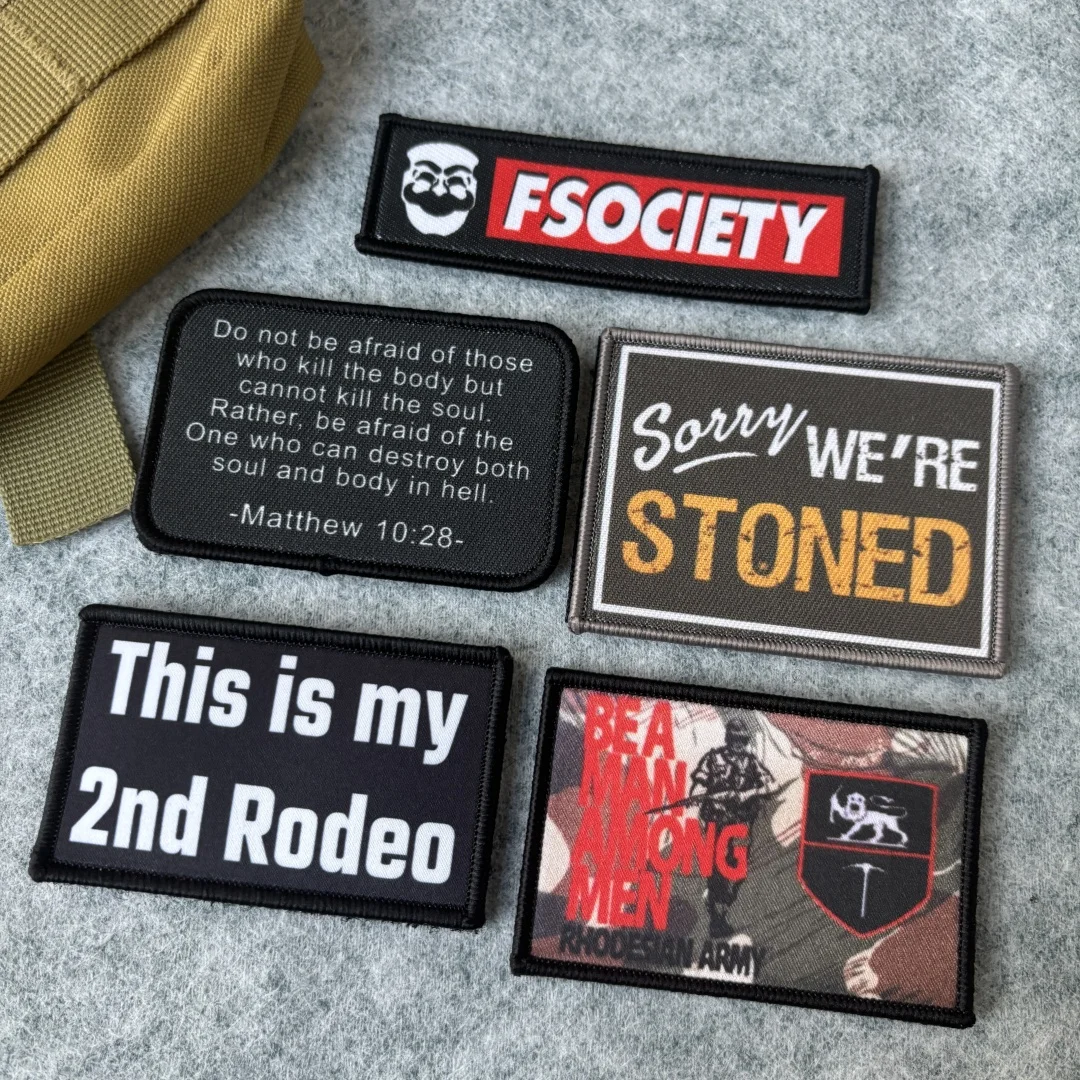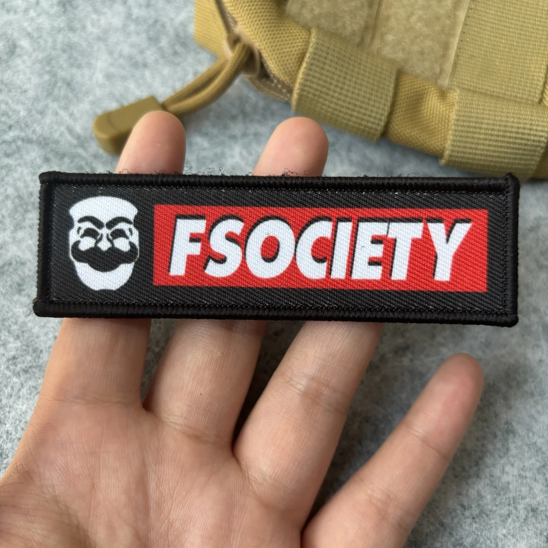 Parche táctico FSociety Mr Robot, parches divertidos de gancho y bucle, brazalete con versículo de la Biblia, insignia de moral del ejército militar, pegatinas para mochila