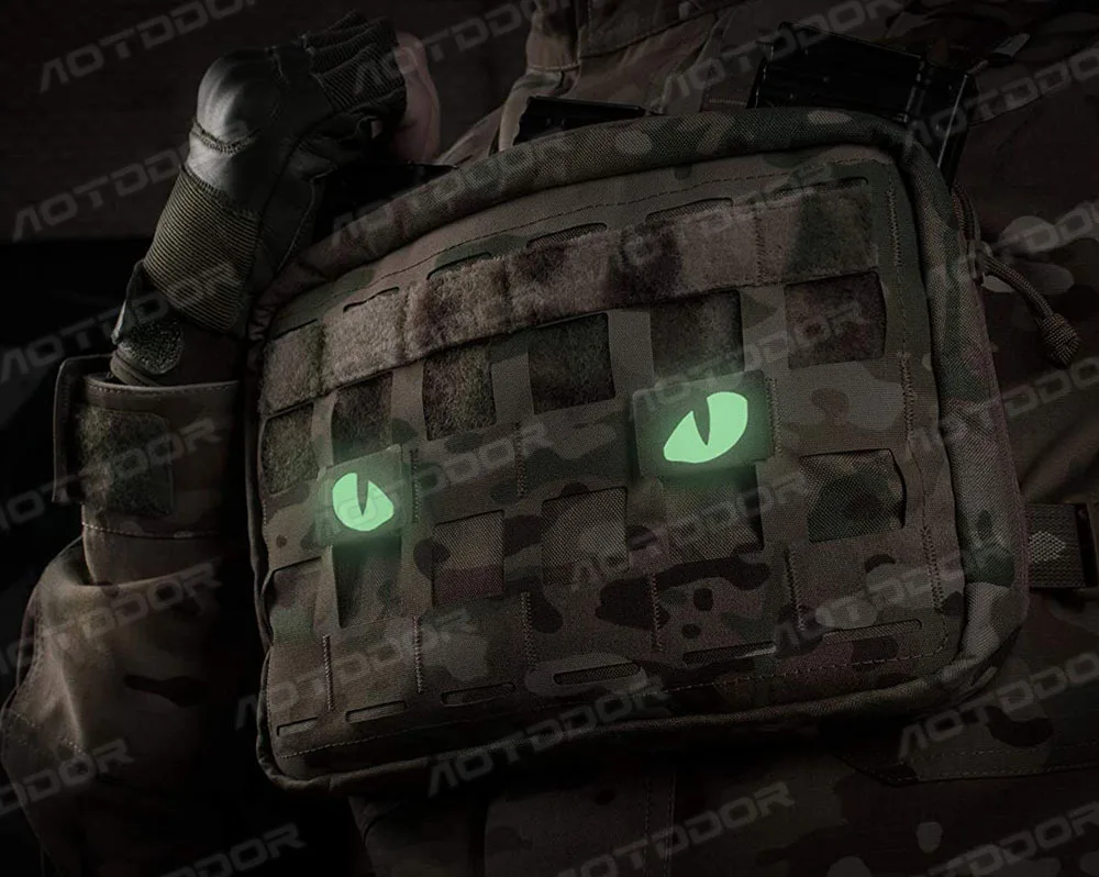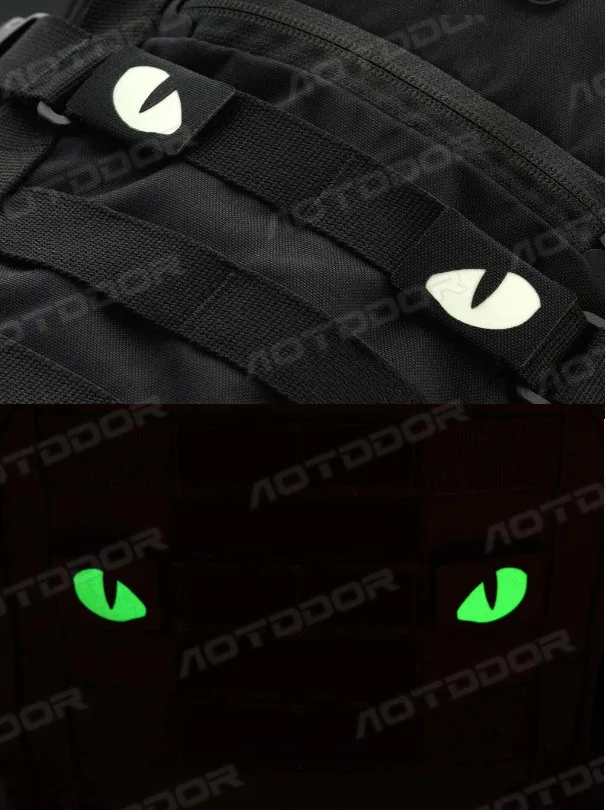 Parche táctico con gancho y bucle de ojos de gato, parche con apliques de combate que brillan en la oscuridad para sombreros, casco, mochila, Parche Militar
