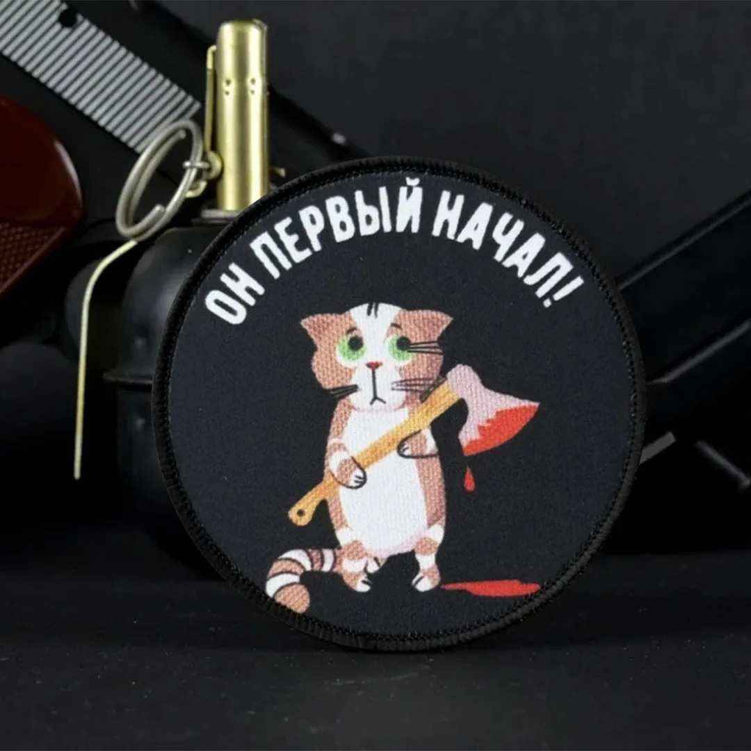 Parche táctico con forma de gato que sostiene un hacha, parches divertidos de gancho y bucle, insignia militar de moral, brazalete militar, pegatinas para mochila