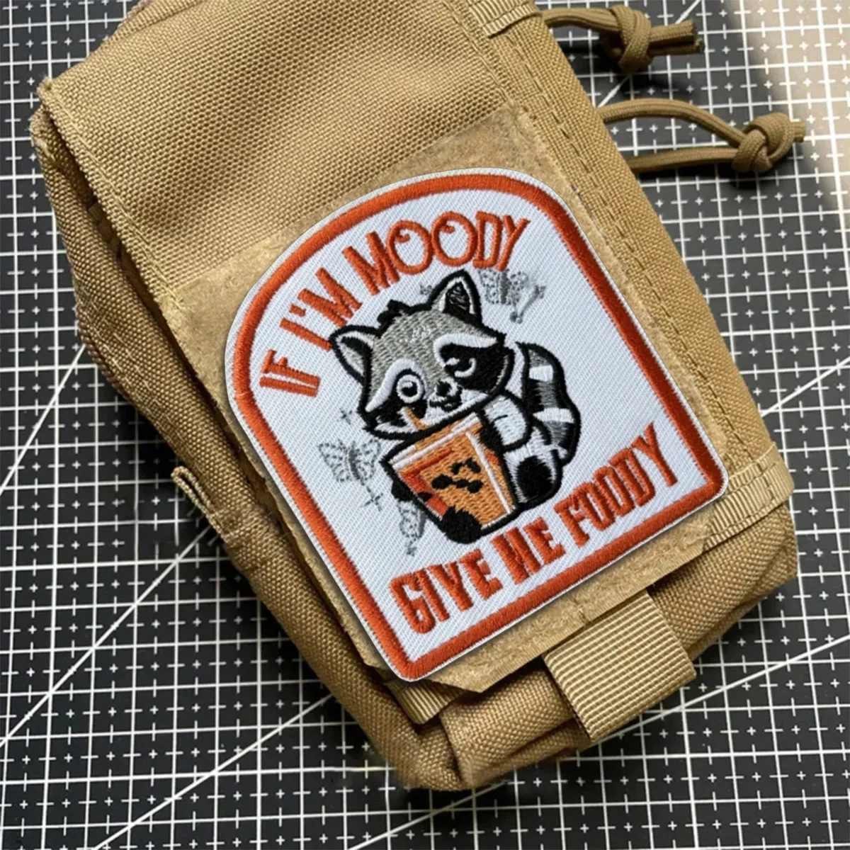 Parche táctico Give Me Foody Raccoon, parches bordados con gancho y bucle divertidos, insignia de moral, brazalete del ejército militar, pegatinas para mochila