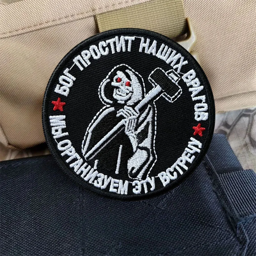 Parche táctico God Will Forgive Our Enemies, parches de gancho y bucle de calavera, brazalete, insignia de moral militar, mochila Chevron, pegatinas para chaleco