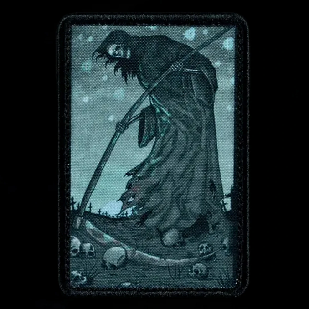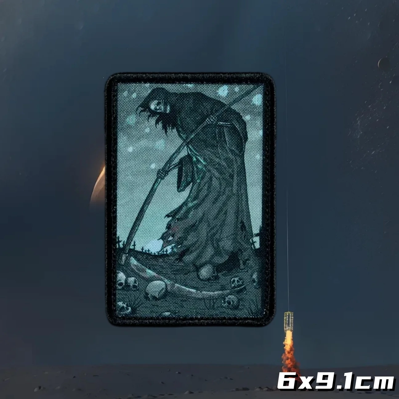 Parche táctico "Harvest", insignia de moral de Calavera, brazalete Crazy Reaper, parches militares HookLoop para ropa, pegatina impresa para mochila
