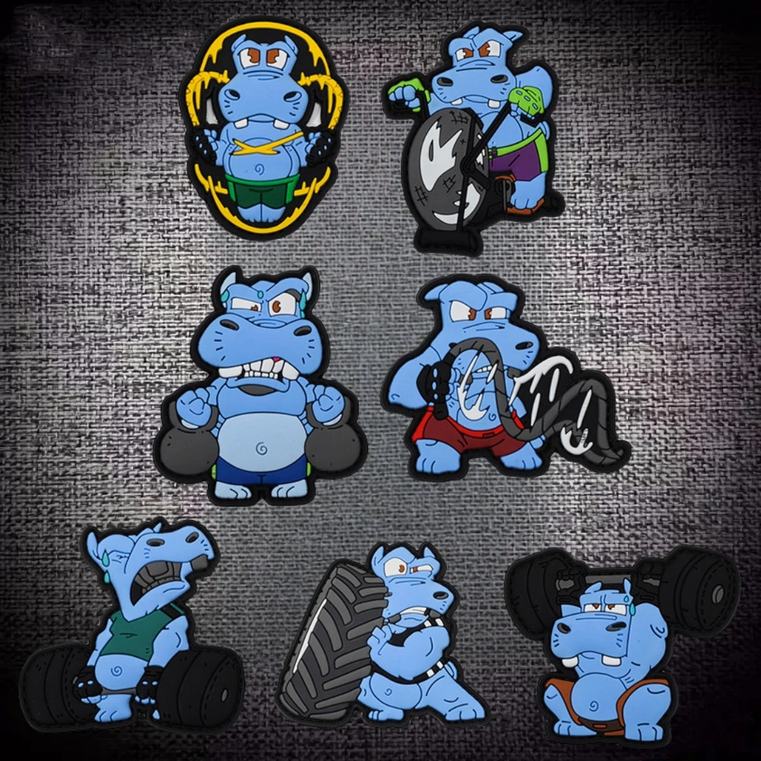 Parche táctico Hippo Squad de PVC, insignias de moral de la serie Hippo para Fitness en pegatina para mochila, brazalete militar, parches de gancho para ropa